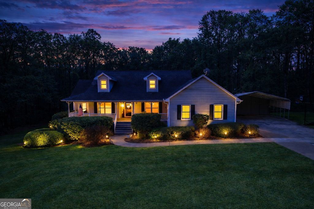 Welcome to this truly unique ranch home nestled on 4 beautiful acres in the desirable Cutters Mill community, perfectly situated on a quiet cul-de-sac. This one-owner home features a charming covered front rocking chair porch and an immaculately maintained yard that showcases pride of ownership throughout. Step inside to find a thoughtfully designed floor plan with hardwood floors in the main living areas and carpeted bedrooms for comfort and tiled bathrooms. The main level offers 3 spacious bedrooms and 2 full bathrooms, including a large primary suite complete with a walk-in closet, dual vanities, and a spa-like bathroom featuring a separate tub and shower. Enjoy a separate dining room and a well-appointed kitchen with black appliances, a breakfast bar, and a cozy breakfast nook overlooking the private backyard. The den features beautiful hardwood flooring and provides a warm, inviting space for everyday living. The updated oversized bonus room with a full bathroom is perfect for a teen suite, home office, or guest retreat. The finished lower level expands the living space with an additional bedroom, full bathroom, and a large living area ideal for entertaining, a game room, media room, or in-law suite. Relax on the back porch while taking in the peaceful views of your expansive acreage. Conveniently located close to city amenities while still offering the privacy and tranquility of country living, this property truly offers the best of both worlds.