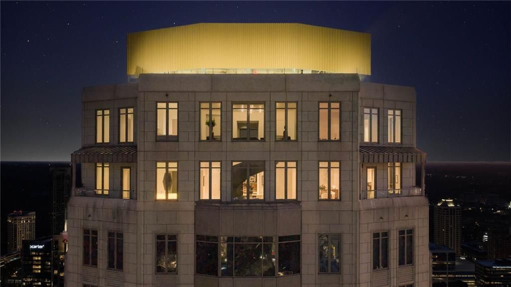 Soaring at the very top of the Waldorf Astoria, 57 & 58 stories above the city, this extraordinary two-story penthouse offers breathtaking 360-degree panoramic views of the Atlanta skyline from every angle. Floor-to-ceiling glass surrounds the residence, filling the interiors with natural light and creating a dramatic backdrop for elevated city living.The main level is designed for both refined entertaining and everyday comfort, featuring a stunning chef's kitchen with custom walnut cabinetry, premium appliances, stone countertops, and an oversized island. Open-concept living and dining spaces flow seamlessly, all framed by unobstructed skyline vistas. A private guest suite on the main level provides ideal accommodations for visitors or flexible living options. The upper level is dedicated to private living quarters, anchored by a luxurious primary suite with a separate sitting room, spa-inspired bath, and 2 generous walk-in closets. Two additional secondary suites on the upper level offer comfort and privacy, each with well-appointed baths and refined finishes. Residents enjoy five-star amenities, including a full-service spa, four-season pool, resident lounge, guest suites, room service from the Waldorf Astoria Hotel, 24-hour concierge and security, absentee services, and valet parking. Residents may also enjoy the convenience of the Waldorf Astoria Hotel bar and restaurant. This residence includes 2 private elevator lobbies, an elliptical staircase joining the 2 floors, four dedicated parking spaces and two adjoining storage units. Perfectly positioned in the heart of Buckhead, this rare penthouse delivers unparalleled lifestyle defined by luxury, convenience, and iconic views.