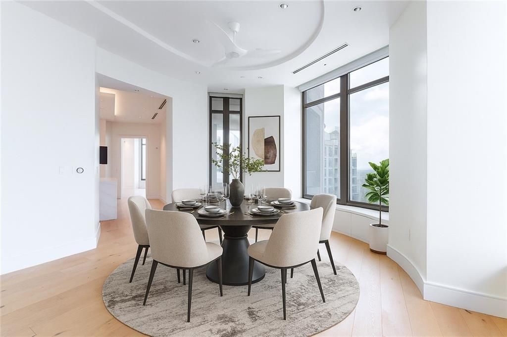 High above Buckhead in the iconic Waldorf Astoria, this exceptional residence occupies half of the 34th floor and reflects breathtaking panoramas and sophisticated design in perfect harmony with the bright and open living spaces, light wood floors and extra high ceilings. LIVING - Enter the dedicated foyer to the integrated main living spaces, each with its own defined features and floor-to-ceiling windows framing a living canvas of the skyline. The living area is anchored by a lovely fireplace and separate discrete butler's pantry. The dining area is defined by a gracefully curved wall of windows, creating an immersive backdrop for every meal.KITCHEN - The modern kitchen features Wolf appliances, stone countertops, oversized island, massive full walk-in pantry, and a full laundry room with side x side washer & dryer. Walk out onto the large covered terrace with a fireplace - enjoy alfresco dining and lounging among the city lights. BEDROOMS - The primary suite is complete with a wet bar and seating area, spacious ensuite bath with extensive cabinet space and custom closet. Two additional bedrooms with ensuite baths are located on the opposite end of the primary ensuring complete privacy for all. AMENITIES - Two dedicated parking spaces in the secure Residents Only garage and a deeded storage unit, a concierge for only the residents, access to the all the hotel amenities including the exemplary spa services provide everything you desire for both full and part time residency.