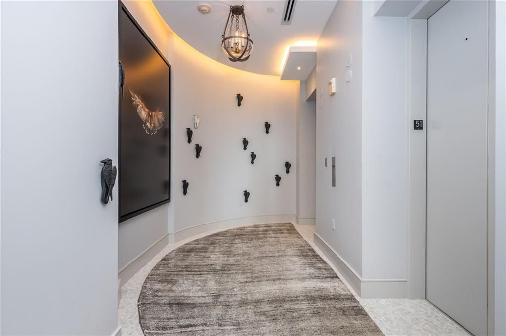 Perched above the iconic Buckhead skyline on the 51st floor is the four bedroom five bathroom 5200 sqft penthouse being offered fully furnished, this is one of only five full-floor penthouses at the Waldorf Astoria ? one of Atlanta's most striking architectural achievements. Tastefully reimagined by Harrison Homes Design and Westbrook Interiors, Penthouse 51 is defined by exceptional finishes, a thoughtful floor plan, and a curated collection of furnishings and art that flow seamlessly together, creating what many consider the most admired residence in the building.Step from your private elevator into a grand entry featuring a domed ceiling, a custom pearl light fixture, and Naxos marble flooring. Before you've set down your keys, Atlanta's finest skyline opens before you ? and beyond it, an oversized terrace with a dedicated outdoor grilling station, a fireplace finished in Calacatta Gold marble, and views that simply cannot be replicated.The main living space offers multiple distinct seating areas where natural light moves through the residence throughout the day. A thoughtfully placed wet bar serves as an elegant divider between the formal sitting room and the family room, anchored by a show-stopping double-sided fireplace wrapped in grey and black Turkish Marmara marble. A large sectional invites you to linger by the fire and the view, while a ceiling-recessed television descends at the touch of a button ? a detail that never fails to delight guests. Surrounding the living space is curate art collection from some of the best local artest, On the other side of the fireplace, a generous formal dining room seats a crowd in style, framed by a floor-to-ceiling temperature-controlled wine display with Marmara marble accents ? the kind of space that feels like a Michelin-starred experience without leaving home. The kitchen is equally commanding: a waterfall island in Brazilian Invierno marble, a full-height honed Calacatta Luccicoso marble backsplash, and professional-grade appliances. A well-appointed scullery and a built-in breakfast nook complete the space for both everyday living and effortless entertaining.The primary wing is a destination unto itself ? a private sequence that unfolds through a dedicated family room with wet bar, a powder room, a study, and a terrace before arriving at the bedroom. The primary suite itself is an architectural statement: tray ceilings, a bespoke light fixture, and floor-to-ceiling windows framing views toward Sandy Springs and the Appalachian foothills. The spa-like ensuite features dual vanities, a freestanding soaking tub positioned to capture Kennesaw Mountain ? and the sunset that falls behind it each evening ? along with a walk-in shower and custom built-out closets.Three additional bedroom suites, each with a private ensuite, are thoughtfully positioned throughout the floor plan for maximum privacy and flexibility. Two separate terraces capture the full arc of the day ? one faces the sunrise, the other the sunset.There is no other penthouse in Atlanta with this level of intention and taste. And beyond the walls of Penthouse 51, life at the Waldorf Astoria delivers the rest: an award-winning spa, legendary five-star hospitality, and immediate access to Buckhead's finest dining and shopping. This is turnkey luxury living at its most complete.