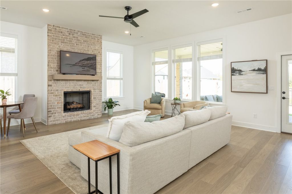 Built in 2024, this beautifully designed single-level home offers 4 bedrooms and 3 bathrooms with a spacious, modern layout. The open floor plan is perfect for everyday living and entertaining, featuring a large kitchen island that anchors the main living space. A dedicated office provides a quiet area for work or study. The spacious primary suite and en-suite bath offers a walk-in shower, soaking tub and walk-in closet. Step outside to a covered back patio that overlooks a serene pond, creating a peaceful setting for relaxing or hosting guests. The backyard also includes a private putting green, adding a fun and unique touch for golf enthusiasts. This home blends comfort, style, and functionality in a thoughtfully designed space. Fantastic location close to Lake Fayetteville, trails and the Botanical Gardens.