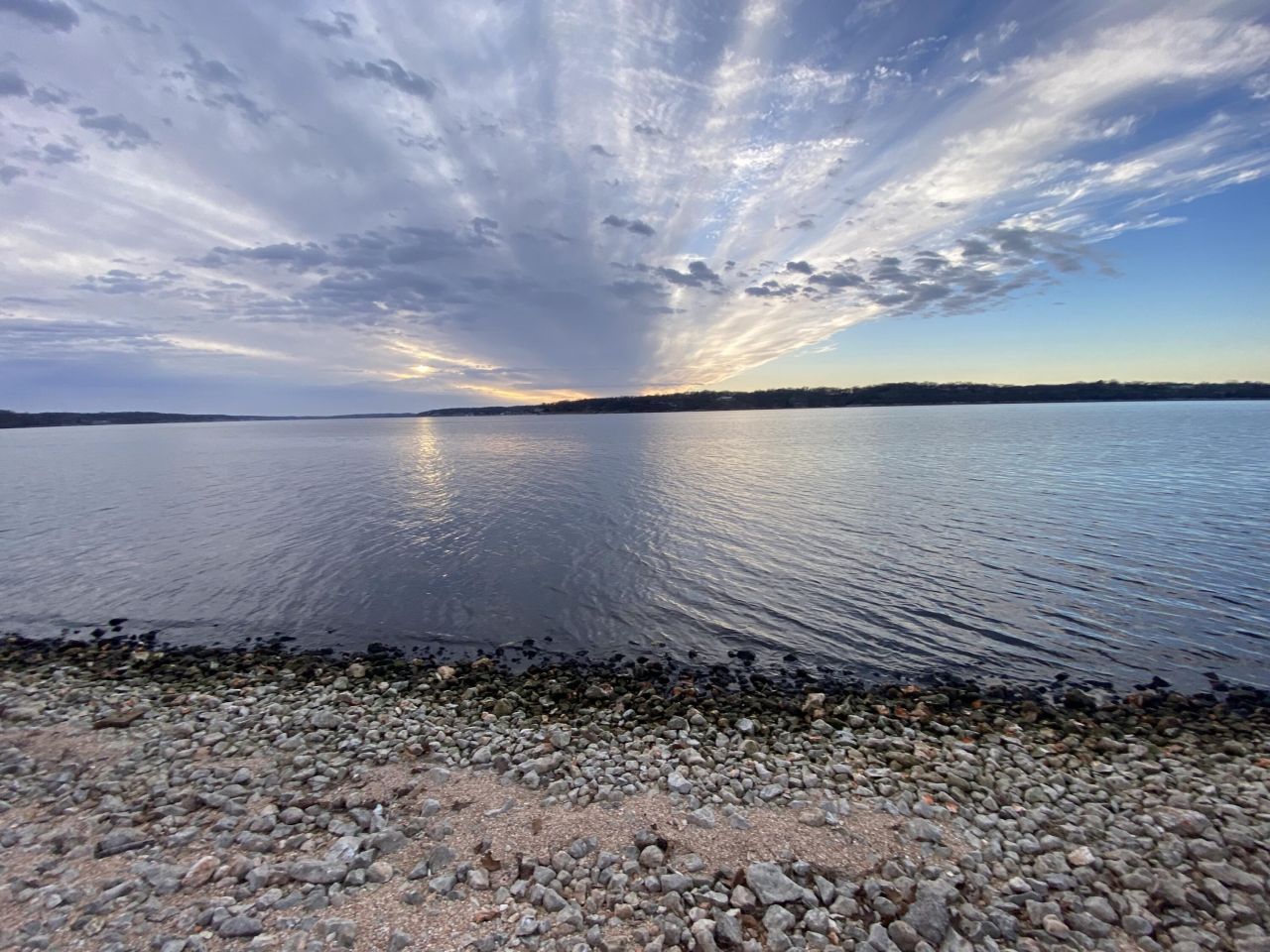 FANTASTIC GRAND LAKE FRONT & GENTLE BEACH AWAIT! 220 degree mainlake views of South Grand Lake will have you staring at sunsets & watching fireworks at Duck Creek. This custom, white stucco home boasts large windows for Grand Lake views from every room. 261' of gradual shoreline is the closest thing to a beach on Grand! Large welcoming vaulted living w/ wood fireplace. Modern white island kitchen w/ SS appliances. Main level primary suite & laundry. Upstairs 2 beds & a bath. Outside on your dockable peninsula, there are shade trees, a shop w/ 220 electric, room to expand, patios & balcony to capture those views. Save big by finishing the paint and flooring. Radiant heat floors. A short boat ride to Duck, Drip, MI, Woodward, Dam, golf, dining & yacht clubs. Luxury development. Sold as is