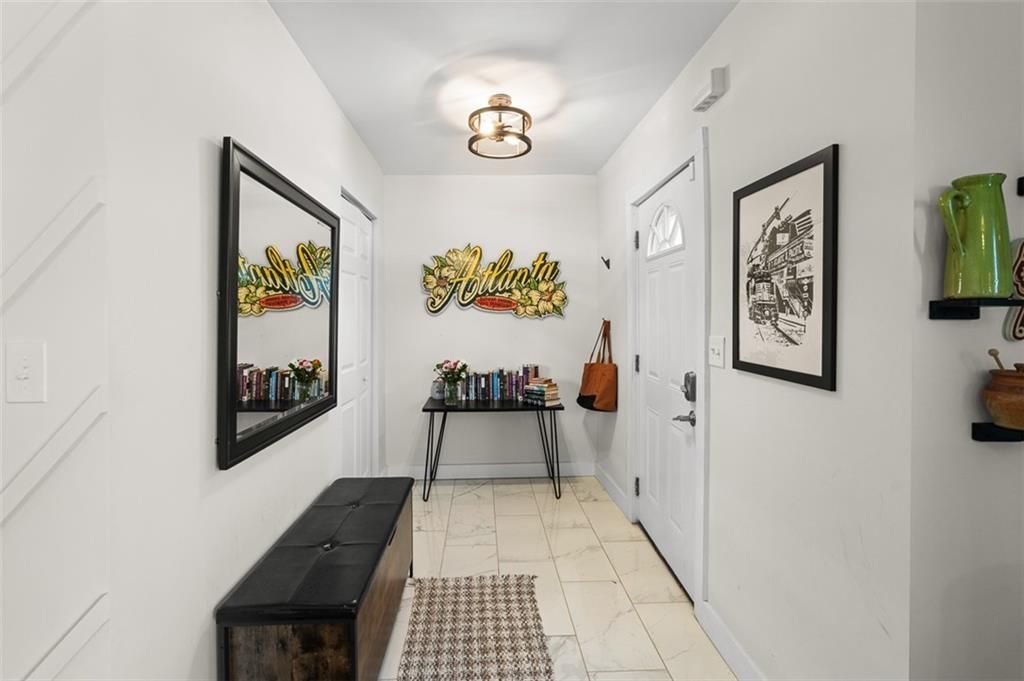 Experience the best of modern living in this beautifully renovated bungalow tucked away in a quiet Atlanta neighborhood. With 2 bedrooms, 1 bath, and stylish updates throughout, this home combines contemporary flair and cozy comfort in all the right ways. From the moment you arrive, you're greeted by clean curb appeal, updated siding, and a spacious front lawn. Step inside to a bright open floor plan featuring beautiful hardwood floors and a striking custom geometric accent wall that anchors the living space.The kitchen is the heart of the home?featuring sleek white cabinetry, crisp countertops, stainless steel appliances, and a gas range perfect for home-cooked meals. The bathroom offers a polished retreat with floor-to-ceiling tile work and modern fixtures. Both bedrooms provide comfortable, light-filled spaces with neutral tones that make moving in a breeze.Practicality meets style with a dedicated laundry area that fits a stacked washer and dryer. Outside, the expansive backyard offers a peaceful escape with plenty of room for pets, gardening, or outdoor entertaining. Off-street parking is available. Located approximately 0.5?0.8 miles from neighborhood coffee shops and restaurants, under 1 mile to local parks, and about 3 miles to Hartsfield-Jackson Atlanta International Airport. Convenient access to Downtown Hapeville, MARTA bus routes, I-75, I-85, and I-285. This home checks all the boxes for convenience and charm!