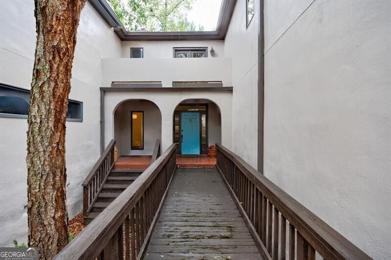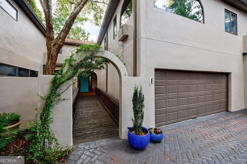 Buckhead's true hidden gem is this 2 bedroom townhome in the Case Bella neighborhood. Unit E has just been freshly painted, the kitchen and full baths have been renovated, its move-in ready! Entrance foyer leads to living room with fireplace and access to the porch. Formal dining room sits in the front of the unit. Kitchen has stone countertops, white cabinetry as well as a breakfast area. Spacious laundry room off of the 2 car garage, as well as powder room. Upper level staircase leads to two bedrooms both with en-suite baths. The secondary bedroom sits in the front of the unit and has an sunroom. The primary suite has a vaulted ceiling, walk-in closet and spacious primary bath with dual vanities, separate shower and garden tub. The upper level also offers a bonus space with wet bar and fireplace. Great for another living space! This unit has a great use of space, living areas are spacious and two separate outdoor spaces. Truly a must see in Buckhead! This quiet community has a total of six townhomes.