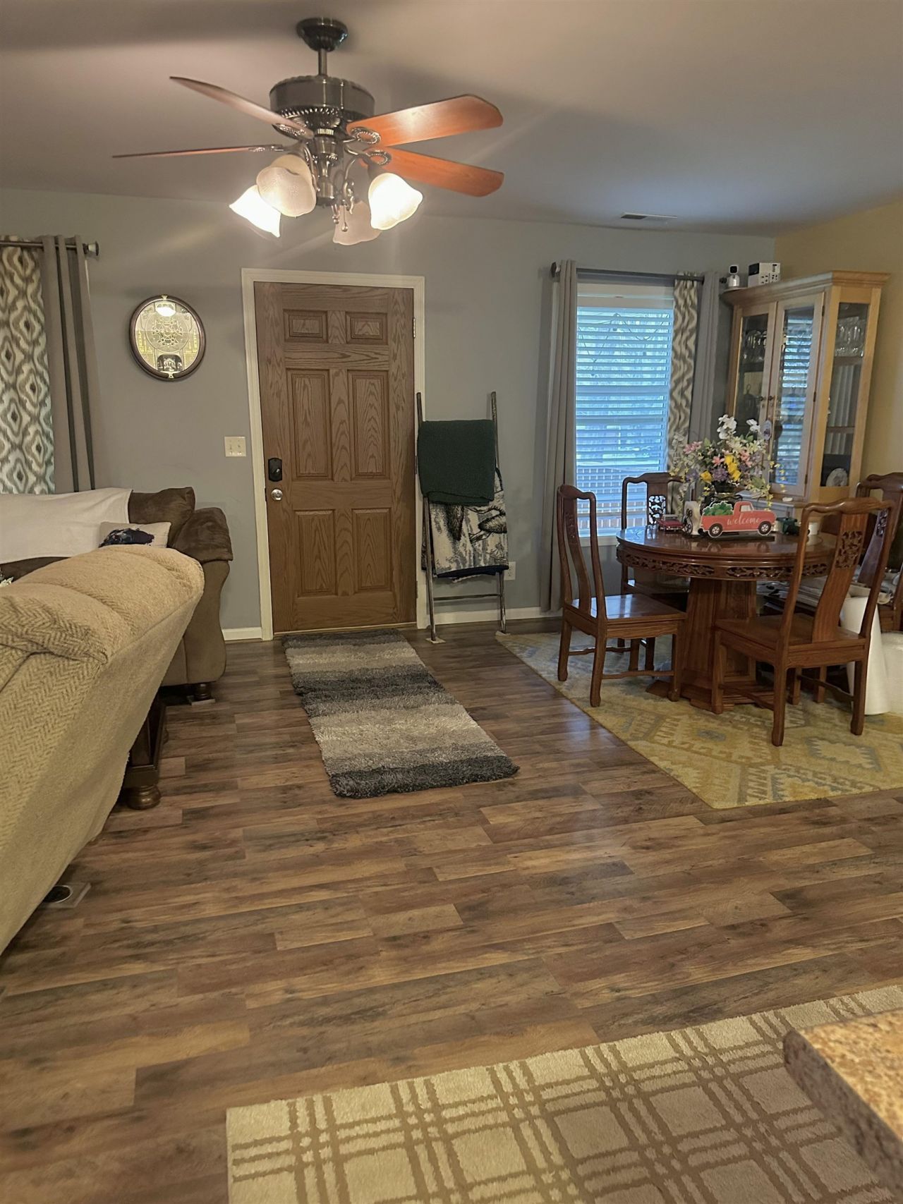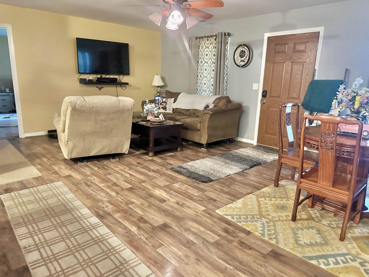 This adorable home features an open-concept living area, 3 bedrooms, & 2 full baths designed for easy living & maximizes every square foot of living space. The private & spacious primary suite is complete with a generous walk-in closet & large tiled shower. The kitchen is very functional with a large island and comes with equipped with refrigerator, stove & built in microwave. Large yard perfect for children and pets and located within close proximity to area schools. There's a 2 car carport with storage room, also. Cute home!
