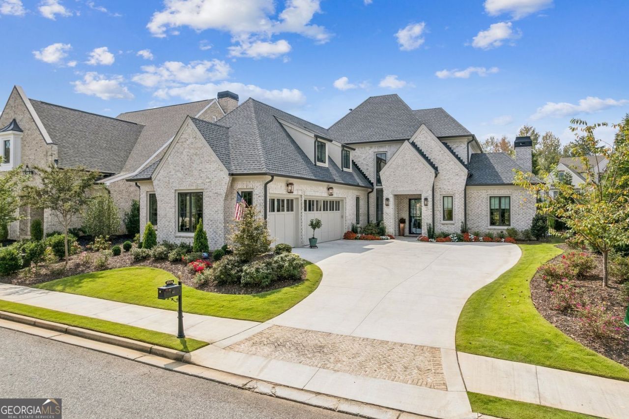 Exciting price adjustment allowing for an exceptional opportunity in The Manor Golf & Country Club, nestled within the exclusive Manor Cottages enclave - this 2024-built home by Santoro Signature Homes showcases curated designer selections and sophisticated finishes throughout its 3750 square feet of elegant living space. With 4 bedrooms, 4 full bathrooms, and 1 half bathroom, the thoughtfully designed floor plan offers a seamless blend of open concept living and private retreats. The Main level features an open Kitchen with top-of-the-line Wolf and Sub-Zero appliances, leathered stone countertops, custom range hood, large island, breakfast bar and service pantry. The Kitchen is flanked by a vaulted Great Room with a gorgeous linear gas fireplace, exposed beams and a wall of windows overlooking a magnificent, show-stopping waterfall & pond in the backyard. The Kitchen also opens to an oversized Dining area with a custom-built bar with antiqued mirror backing, custom shelving and a beverage refrigerator. Sliding glass doors lead from the Dining area to a covered wood-burning fireside Veranda; and a serene saltwater, heated Pool & Spa. The luxurious main level Owner's Suite features a stunning, spa-like bathroom with large shower, double vanities, additional heater and a spacious walk-in closet with custom built-ins. Additionally, the main-level offers a vaulted, custom trimmed Office with private access to the veranda and pool area; a showstopping Powder Room with underlit, floating vanity; and an oversized Laundry Room & Mud Room area with custom shelving galore. The Upstairs features three private, spacious Bedroom Suites, each with a walk-in closet and en-suite bathroom. There is also a Flex/Bonus room on the 2nd level of the home that could be used as an office, exercise room or library. This home's Three Car Garage features an epoxy painted floor and a surround of wainscot trim moulding. The exquisite craftmanship and extraordinary level of finishes throughout this home are unparalleled - from the top-of-the-line hardware & elegant Brizo faucets to the spectacular light fixtures; from the trim package in every room to the dramatic pops of designer wallpaper; from the custom shelving in every closet to the tile work in every bathroom. This home is impeccable from top to bottom. The home also offers an incredible amount of Storage space. The Manor is gated and has superlative amenities including indoor and outdoor pools, indoor and outdoor tennis courts & pickleball courts, fitness center, two Clubhouses, 18-hole Tom Watson designed golf course, and sidewalks throughout. Phenomenal school district. Additionally, the home is located in Forsyth County, and therefore eligible for the Senior Tax Exemption a significant $$ annual savings!! Close to shopping and easy access to GA 400.