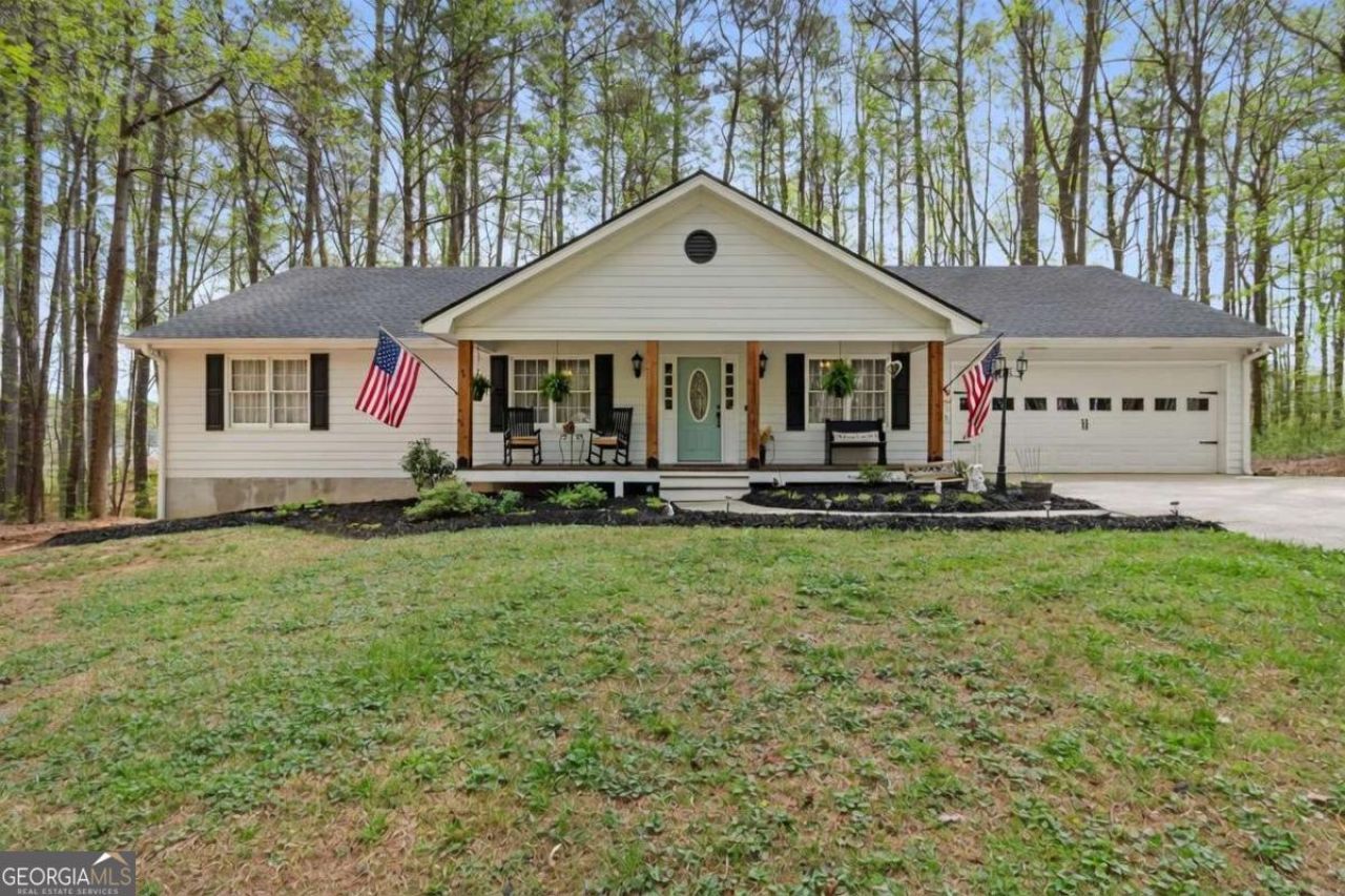 This well-kept home sits on a generous, secluded lot and offers the kind of space and comfort that's hard to find. The inviting covered front porch, accented with wood columns, sets the tone as you step inside to a spacious ranch layout with a walk-out basement. The main level features a roomy kitchen, comfortable living areas, and well-sized bedrooms that give the home an easy, livable feel, plus a separate laundry room with the washer and dryer included. Downstairs, the walk-out basement features a charming brick fireplace and offers a ton of potential to bring your vision to life-whether you're envisioning additional living space, a workshop, or a recreation area. Outside, the backyard feels peaceful and private, complete with a stone firepit that makes a perfect spot to unwind or entertain. Parking and storage are no issue thanks to the two-car garage at the end of the driveway, paired with an additional garage space in the basement. Located just minutes from shopping, dining, and commuter routes, this home delivers the perfect blend of convenience, community living, and room to grow-with Publix and several other restaurants and everyday essentials within walking distance. Truly a great find!