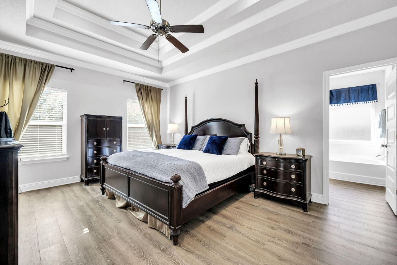 You pull into Lakeview Estates, the gate closing softly behind you, the noise of the day just . . .fades. This is Santa Rosa Beach living the way many people hope to find it - close to everything yet comfortably tucked away. This five-bedroom home is designed for real life. Mornings start easily in the open kitchen, where quartz countertops, generous cabinetry, and plenty of workspace make everything from quick breakfasts to weekend gatherings feel effortless. The kitchen flows naturally into the main living area, so conversations carry, laughter lingers, and no one feels tucked away while hosting. The split floor plan is a quiet win. The primary suite offers a true retreat at the end of the day, while the additional bedrooms flex to fit your life - guest rooms, home offices, hobby space, or a little of everything. Step out to the screened porch and enjoy evenings outside without the bugs, a simple pleasure that never gets old. The oversized garage adds breathing room for storage, beach gear, bikes, or weekend projects. And then there's the location. A short drive puts you at the baches, dining, and shopping along 30A, with easy access to Highway 98 when life calls you elsewhere. Back home, the community pool and well-kept surroundings remind you why gated neighborhoods are so appealing - quiet streets, familiar faces, and a sense of ease. With no short-term rentals allowed, Lakeview Estates is intentionally calm, making this home a great fit for a primary residence or a second home for those who want a low-traffic coastal lifestyle - close to the action, but never caught in it.