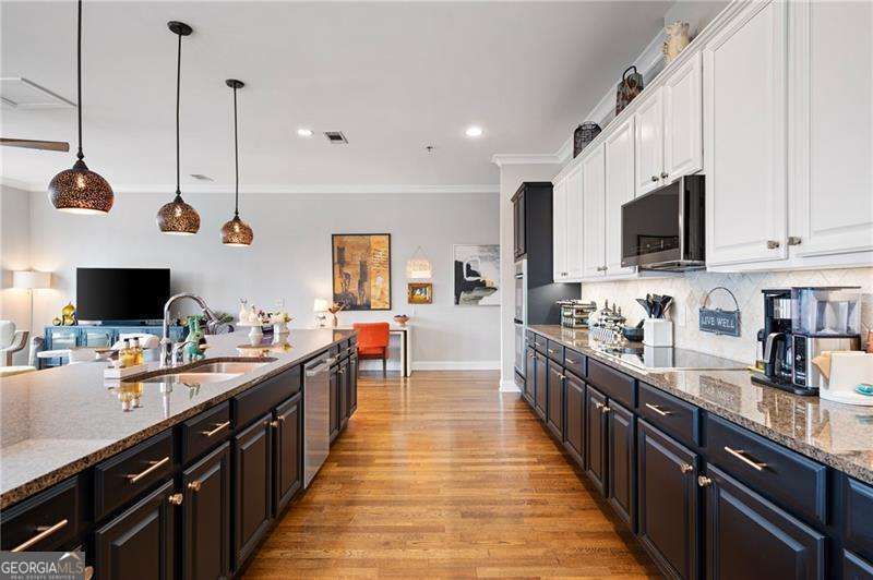 Experience elevated living in this one-of-a-kind penthouse, the only one in the building and a true top floor end-unit that spans from front to back - offering uninterrupted views in both directions. Start your day with sunrise on the rear walk-out balcony facing the peaceful mountains, and unwind with sunset views from the front balcony overlooking the vibrant City of Woodstock. This luxury condo is packed with over $100,000 in high-end upgrades and offers a lifestyle that's second to none in the heart of downtown Woodstock. With abundant storage, upgraded lighting, and thoughtful design details, this home has it all. Designed for entertaining, the open-concept living space features a chef's kitchen with a massive 12' x 4' island, walk-in pantry, and premium finishes throughout. The private primary suite is a true retreat, complete with a spacious 15' x 6' walk-in closet and a spa-inspired bath that includes a soaking tub, separate shower, and dual vanities. The guest bedroom is also a private suite, offering a full bath and an oversized closet, perfect for guests or a home office. Located just steps away from Woodstock's amphitheater, shops, restaurants, and Greenprint Trails, this penthouse puts you at the center of it all. Voted one of Money Magazine's Top 50 Places to Live, Woodstock offers a vibrant, walkable community - and this is your chance to live right in the middle of it. This penthouse truly delivers the WOW factor - don't miss it!