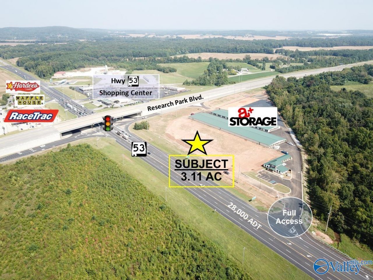3.11 acres available fronting Research Park Blvd at the NE Corner of Research Park & Highway 53. Outparcels to existing A+ Storage development. Full access in place. Located in Huntsville City Limits. Daily traffic count of 25,000+ vehicles. All utilities at site.