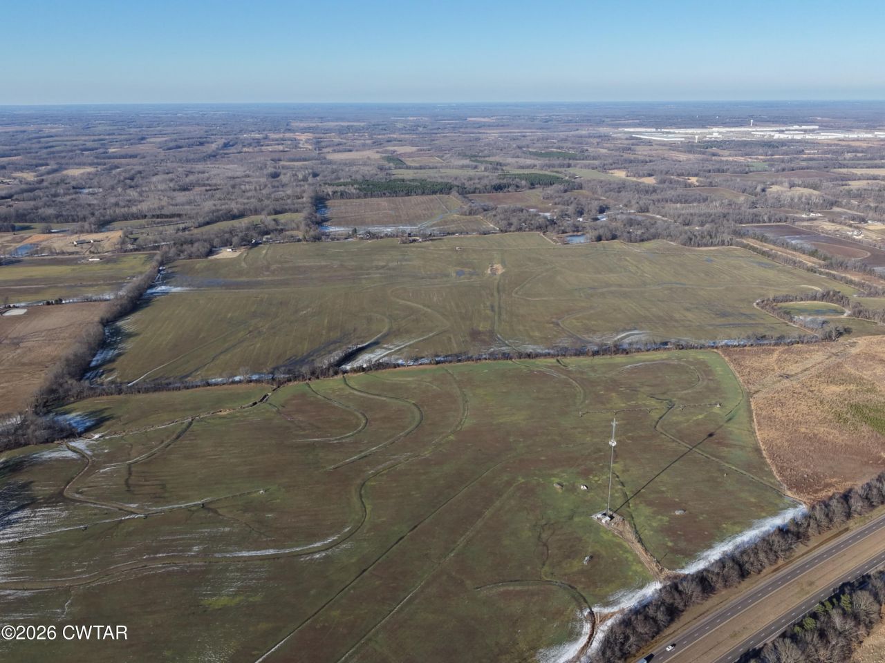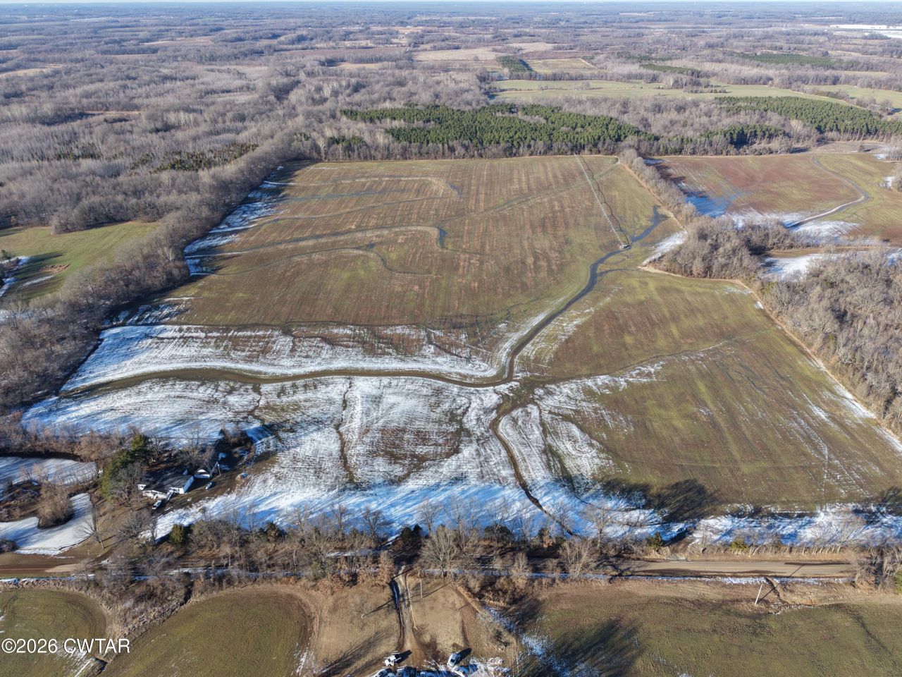 Large contiguous agricultural tract located on Thorpe Drive in Fayette County, Tennessee, consisting of approximately 341.5 acres under Parcel ID 013-028.00 per county records. The property is conveyed as one continuous tract and includes a 1,562± square foot single-family residence built circa 1963, positioned on an established improvement site within the larger acreage. The land offers a strong mix of productive rotational tillable ground totaling approximately 299.5 acres, along with wooded acreage, non-productive ground, and an improved homesite. Gently rolling topography supports efficient agricultural use while also providing flexibility for estate ownership, recreational use, or long-term land investment. Interior field divisions and access paths are present within the tract. Per county parcel mapping, the property is an irregularly shaped single tract. The southern boundary runs generally east to west and lies north of the major highway corridor, with no interstate frontage included. The eastern boundary extends generally north to south and reaches toward Thorpe Drive, providing paved road access. The northern boundary follows a series of angled and stepped parcel lines adjoining wooded and agricultural tracts, while the western boundary adjoins additional agricultural land and follows a mostly north to south orientation with minor deviations. The residence is located toward the central-southern portion of the property. Utilities include public electric, individual water, individual gas, and individual sewer or septic. The property is located in FEMA Flood Zone X, indicating minimal flood risk. County records reflect agricultural and household unit land use, and no detached parcels or outparcels are included. Conveniently located within close proximity to Blue Oval City, this property presents an opportunity to acquire a large-scale Fayette County tract positioned near one of West Tennessee's most significant economic growth areas while maintaining rural privacy and agricultural productivity. Buyer or buyer's agent to verify all acreage, boundary lines, zoning, utilities, land use suitability, and intended use. Exact boundary lines and corner locations are subject to the recorded deed and or a buyer-obtained survey.