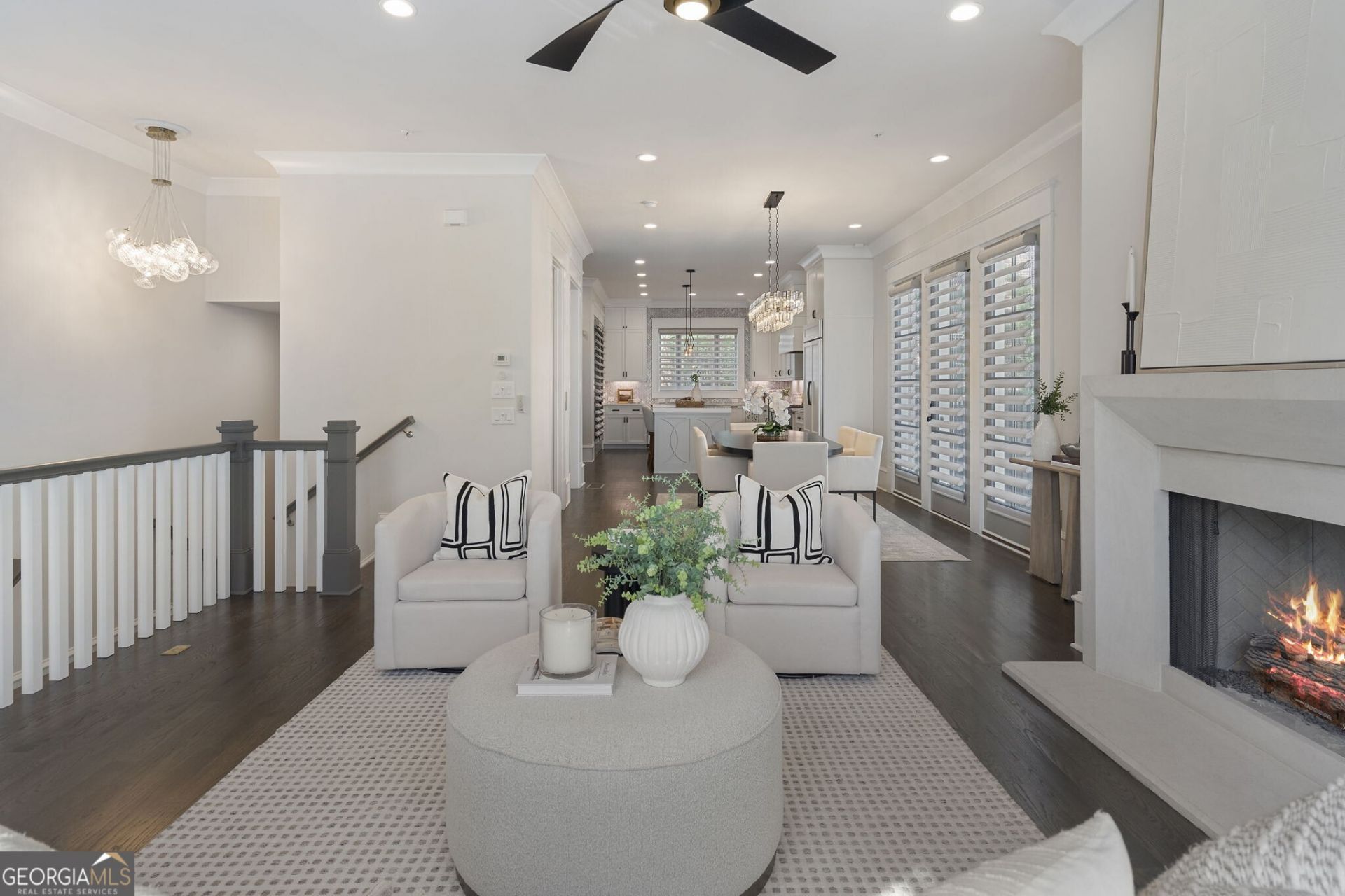 Welcome to this Immaculate Executive home located in a Gated Enclave of 17 Beautifully Appointed Townhomes. Enjoy Elevator access to all 4 levels. Wind down on the Expansive Rooftop Terrace with a Cozy Fireplace and plenty of space for your Outdoor Living and Dining Pleasure, perfect for Refined year round Entertainment seamlessly connected to the Indoor Wet Bar with Beverage fridge. This End-home provides abundant Natural Light throughout. The Chef's Kitchen features a Wolf Range, Paneled Sub-Zero Refrigerator, Oversized Island, under cabinet lighting provides Ambient lighting that highlights the custom counter to ceiling Herringbone backsplash. Located off the kitchen you will find a Covered Patio to start your morning. Your Owners Suite offers a Juliette Balcony, Spa-like bath with Soaking tub, Luxurious Shower and custom walk-in closet to keep you organized. The secondary bedrooms with En-Suite Bath provides privacy. A Flexible first-floor space ideal for gym, office, or guest suite also has a covered Patio that leads to the Private backyard. This Former Model home has over $100K in upgrades, including Hunter Douglas motorized blinds, Full Site-Finished Custom Hardwood Floors, Limestone Fireplace, Smart Security, Pest Ban and Custom storage minutes from World Class Shopping, Dining, Golf and easy access to GA-400.