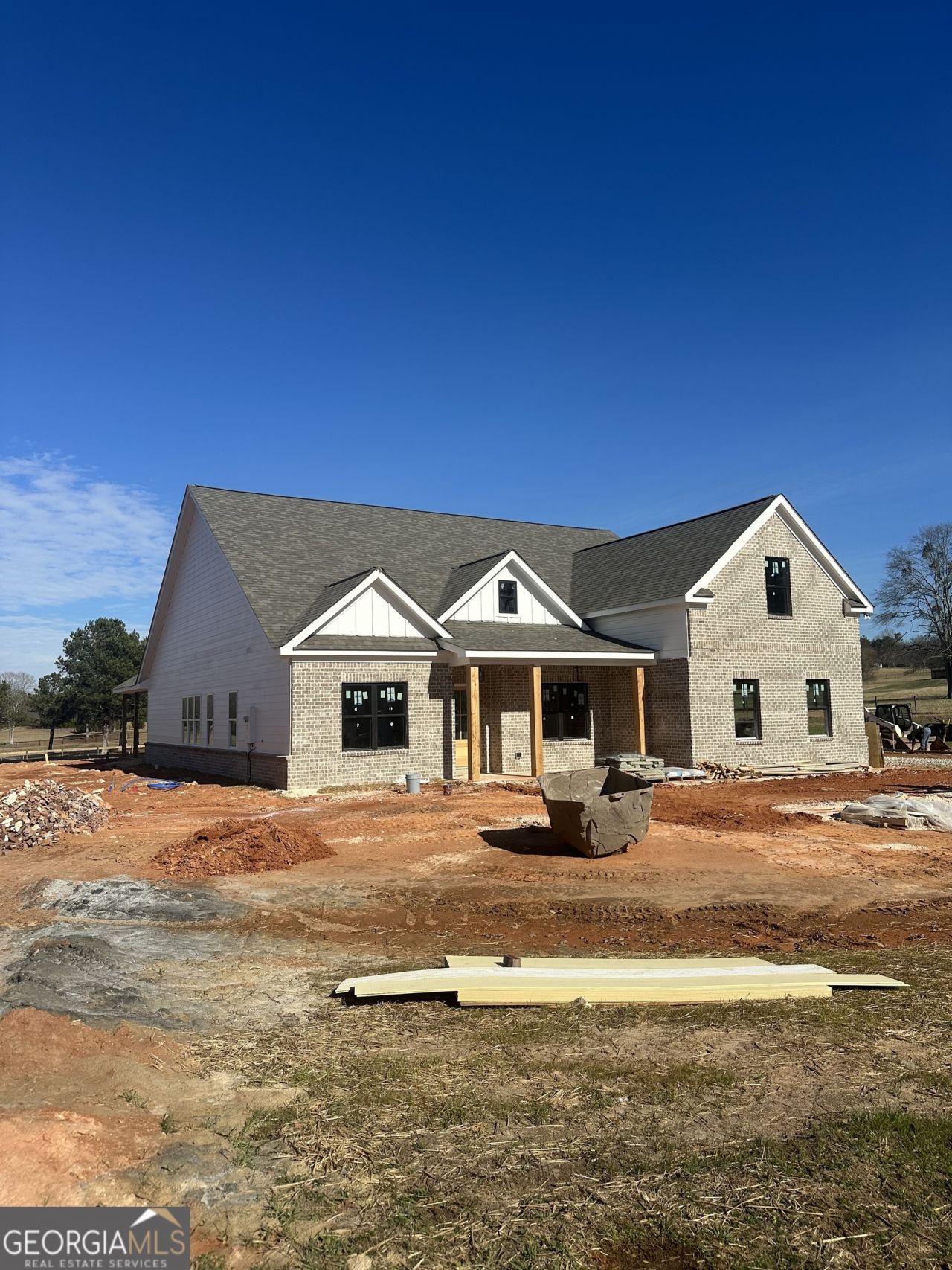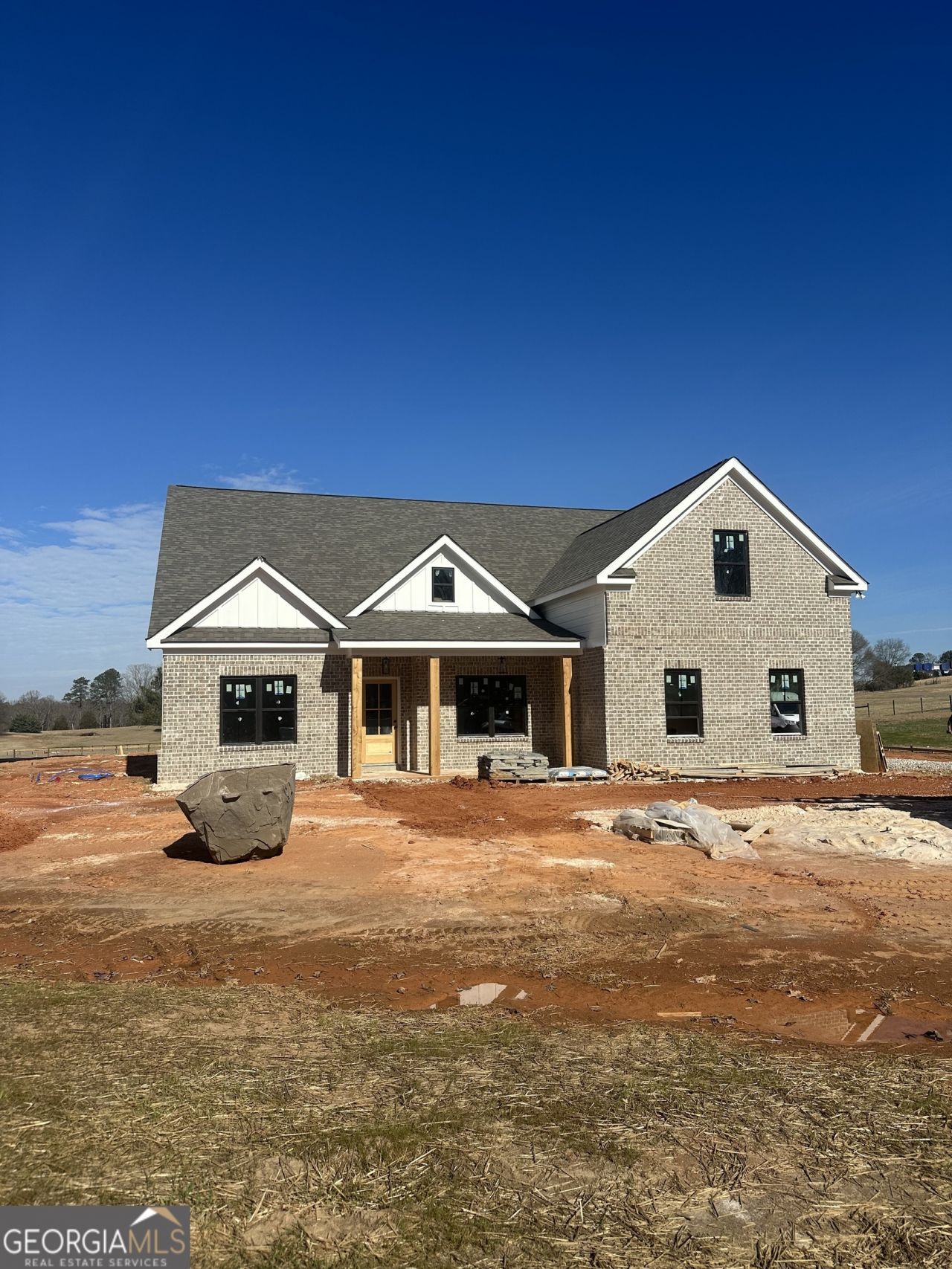 Introducing The Grandview Plan by K&M Homebuilders, nestled on 2+ private acres in the highly sought-after Walker Park Elementary School District. This stunning new construction home perfectly blends luxury, space, and convenience. From the moment you arrive, you'll notice the thoughtful details, including a covered front porch with flagstone flooring, cedar posts, and a spacious 4-car garage. Out back, enjoy year-round entertaining on the covered patio featuring a brick outdoor fireplace, perfect for cozy evenings or hosting game days. Inside, the open floor plan is designed for both everyday living and entertaining, with LVP flooring throughout the foyer, dining room, formal living room with coffered ceilings and recessed lighting, private office with custom built-ins, kitchen, and breakfast area. Upgraded crown molding and a warm brick fireplace anchor the inviting family room. The chef's kitchen overlooks the family room and is equipped with white cabinetry, granite countertops, a stylish tile backsplash, a double oven, and a cooktop-perfect for preparing meals with ease. The owner's suite offers a true retreat with a tray ceiling, his and her closets, and a spa-inspired bath complete with a large herringbone-tile shower that encloses a freestanding soaking tub, along with a double vanity. Generously sized secondary bedrooms provide plenty of space, and the upstairs fourth bedroom includes a private full bath, making it ideal for guests or a teen suite. Conveniently located near Hwy 316, Hwy 78, Gateway shopping, medical facilities, a movie theater, Publix, and just minutes from Monroe and Athens, this home offers both privacy and accessibility. Ask about $25,000 in incentives when using the builder's preferred lender!