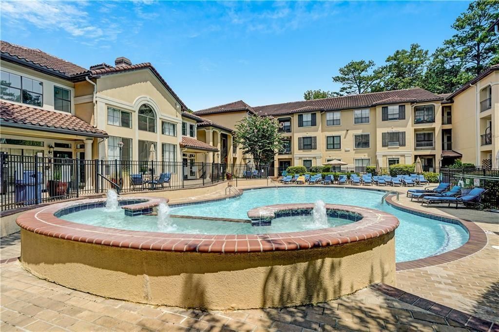 The locations of Brookhaven and Buckhead make this first floor condo perfect for anyone who likes to walk to shopping and eating. This freshly painted two bedroom roommate floor plan in a gated community would be perfect for anyone. The resort style amenities of the community include a 24 hr. attendant; pool; fitness center; business center; club room;18 person theater; dog park. The unit has 2 assigned, reserved parking spaces that are steps away from the front door. The covered patio is private and opens to green space.