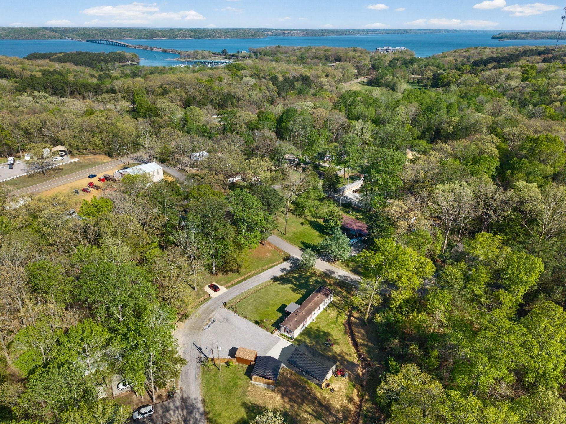 Bring your boat and park it in the large detached garage or dock it at the marina only 0.9 mile away! Beautiful Kentucky Lake-launching-marinas and golf course are right here for you. This gem is waiting for you and has been meticulously maintained. Find this renovated mobile home with 2x6 exterior walls, house style windows, vinyl siding and shingle roofing offering open floor plan with 3BR-2BA. You find LVP flooring, new interior paint, SS appliances along with washer and dryer to be included. Primary bedroom offers large closet space and primary bath with nice soaking tub and separate step in shower. Covered front deck with sidewalk leading to driveway and detached garage. Concrete parking pad found in the front area of the garage and over to the detached double carport. You have a small Amish built storage building/workshop which is wired and offers one side storage loft and work bench. The 24x36 metal detached garage with hi-beam LED lighting offers side entrance door, 2 front bays and one back bay door-all being electric roll ups. Front doors offer 10x10 space. The 24x24 detached metal carport has a gravel bottom with wind/storm anchors and privacy fence to the back side. You have ample parking space and side drive through area being so convenient. You find a 30AMP electric plug ideal for the RV/ camper parking and the level lot being ideal to support the family or friends. Convenient area to nearby shopping and multiple restaurants-dining being ideal for full time-seasonal or airBNB life style. This is a very inviting property and a must see to appreciate!