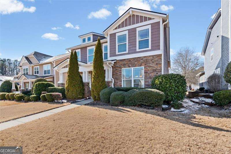 Welcome to the charming subdivision of Old Towne Bethelview, where white picket fences, sidewalk-lined streets, and a friendly neighborhood atmosphere invite you home. This beautifully maintained Craftsman offers an open main-level floor plan filled with natural light, featuring wood floors, a flexible bedroom or office, and a renovated kitchen including stainless steel appliances, white cabinets and stone countertops that overlooks the living area-perfect for everyday living and entertaining. Walk out to a great patio space perfect for grilling and relaxing. Upstairs, enjoy brand-new carpet throughout the bedrooms, including a spacious primary suite with a large bathroom and closets, along with two generously sized guest also boasting tons of natural light. Enjoy low maintenance living with the roof and HVAC being less than 4 years old! Conveniently located near GA-400, The Collection at Forsyth, Big Creek Greenway, and top-rated Forsyth County schools, this home truly has it all and is the perfect place to call home.