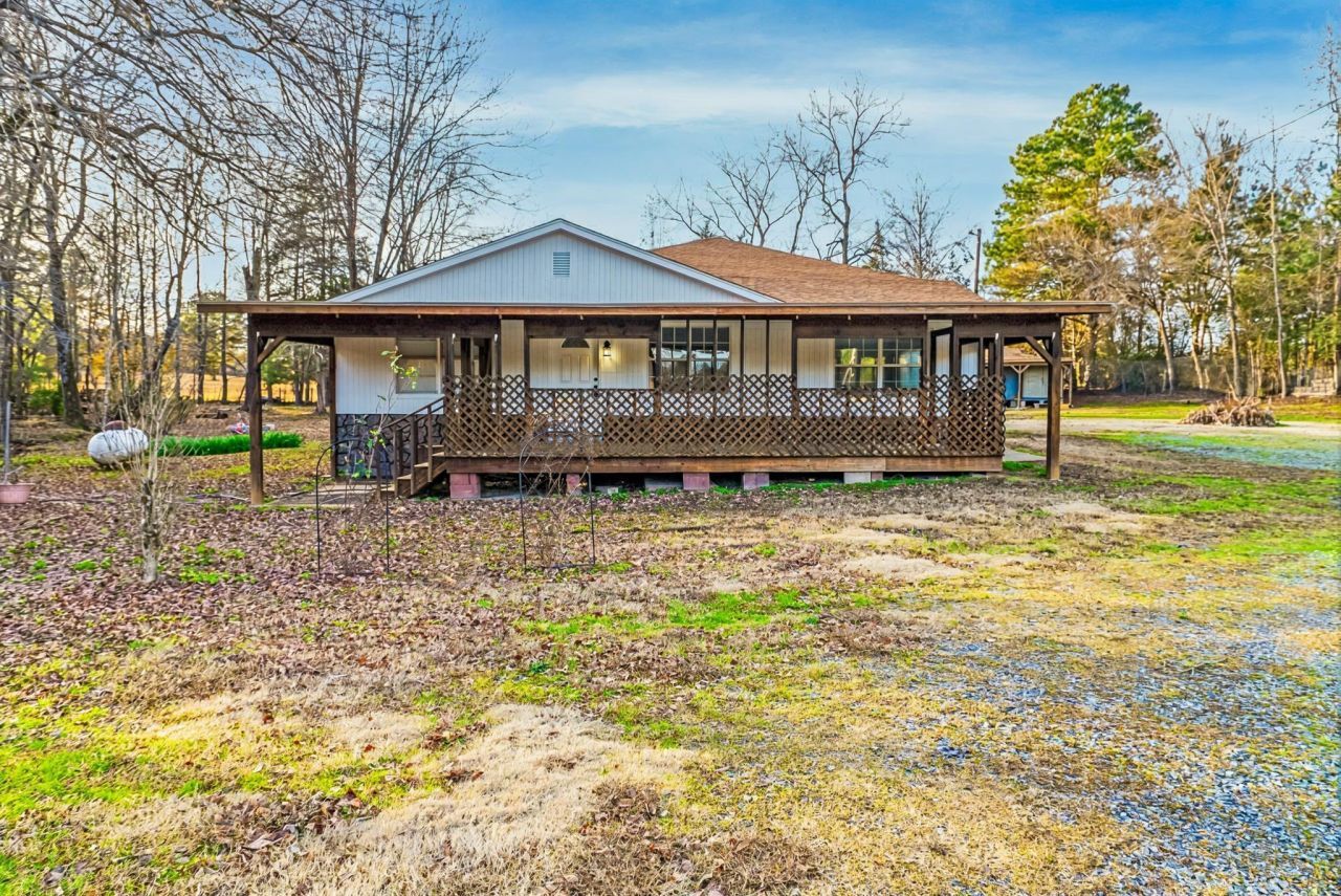 Situated on a spacious 1.6-acre fully fenced lot, this renovated 3-bedroom, 2-bath home offers both functionality and flexibility. Recent updates include fresh interior paint, new flooring, updated cabinetry, quartz countertops, and new appliances. Oversized rooms provide generous living space, highlighted by an impressive open living area that can easily accommodate multiple uses such as living, dining, or additional seating areas. The primary bedroom is privately located, offering a quiet retreat. Outdoor features include a large covered front porch, covered back porch, side patio area, and a horseshoe driveway for easy access. Detached shed conveys as-is. Convenient location with room to spread out and enjoy. Buyer to verify schools. Home and lot size from tax assessor data. Floor plan room dimensions auto generated and not exact. Room dimensions are approximate. Some photos have been virtually staged.