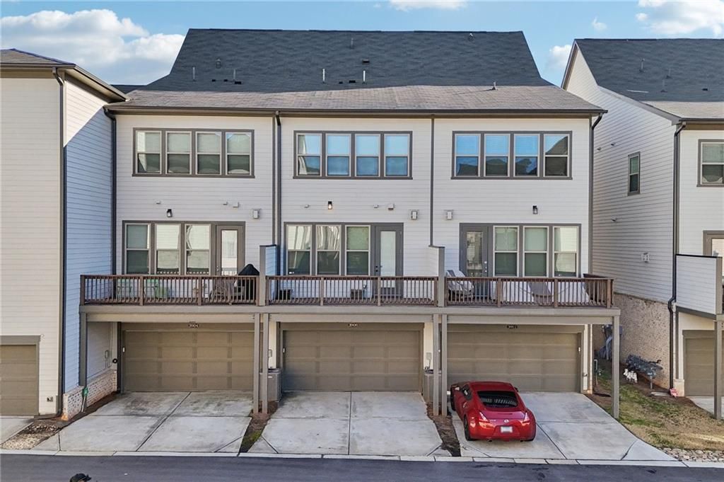This light-filled open design creates the perfect backdrop for easy, relaxed entertaining.At the heart of the home, an expansive kitchen island with integrated storage creates a natural gathering place, seamlessly connecting to the sun-drenched family room and extending out to the rear deck for indoor-outdoor living. A dedicated dining space provides versatility, ideal for both casual weeknight dinners and memorable celebrations. Behind private gates, this exceptional property offers resort-style amenities including a sparkling pool, fitness center, inviting outdoor lounge areas, grilling station, and fire pit-creating the perfect setting to unwind or host with ease. The contemporary kitchen is appointed with sleek quartz countertops and refined finishes, while a charming balcony offers a peaceful retreat for morning coffee or evening relaxation. Upstairs, the generous primary suite serves as a true sanctuary, featuring dual vanities, an oversized shower with built-in bench seating, and convenient proximity to the laundry room. A rare elevator shaft provides valuable future potential and added flexibility. All of this just moments from Truist Park, top-tier dining and shopping, and direct access to the Silver Comet Trail.
