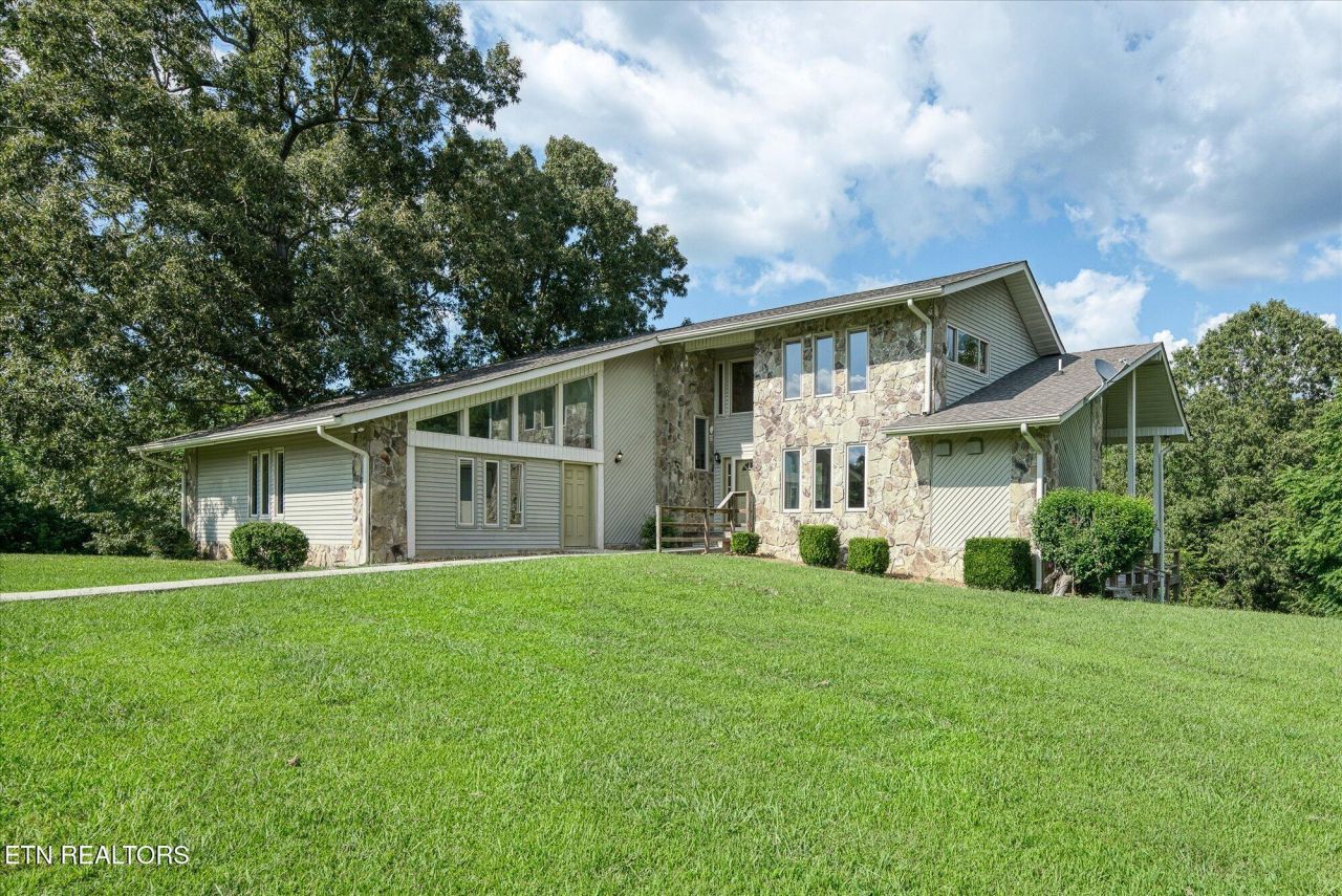 One of a kind Tennessee retreat on 6 acres providing a spacious stone style home, guest house or office area, basketball court, and level to sloping land! This is the perfect opportunity to make this home your own peaceful oasis, whether it is your primary residence or a getaway property! It was built by the UCHRA for a boys camp and offers two living areas with vaulted ceilings, beam accents, floor to ceiling stone fireplace, and wood wall detailing throughout the home. The main level also offers a dining area, kitchen, and what could be the primary suite with a full bathroom as well as access to the side deck which wraps around the whole length of the back of the home, looking off into the woods. Upstairs, there are multiple bedrooms and another bathroom. The basement is completely finished and has its own covered patio, multiple showers and another bathroom, as well as plenty of storage space and other options for bedrooms or secondary living for in laws and guests. The office or guesthouse section was used as classrooms and offices, but is a ranch style with possibility of adding a bathroom! Behind there is your basketball court and plenty of space for animals or recreational use! You are not far from Center Hill Lake or Caney Fork. A survey is on file. 13 month home warranty for peace of mind.