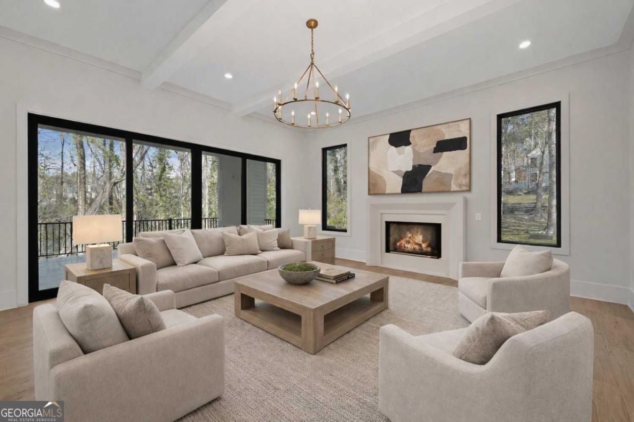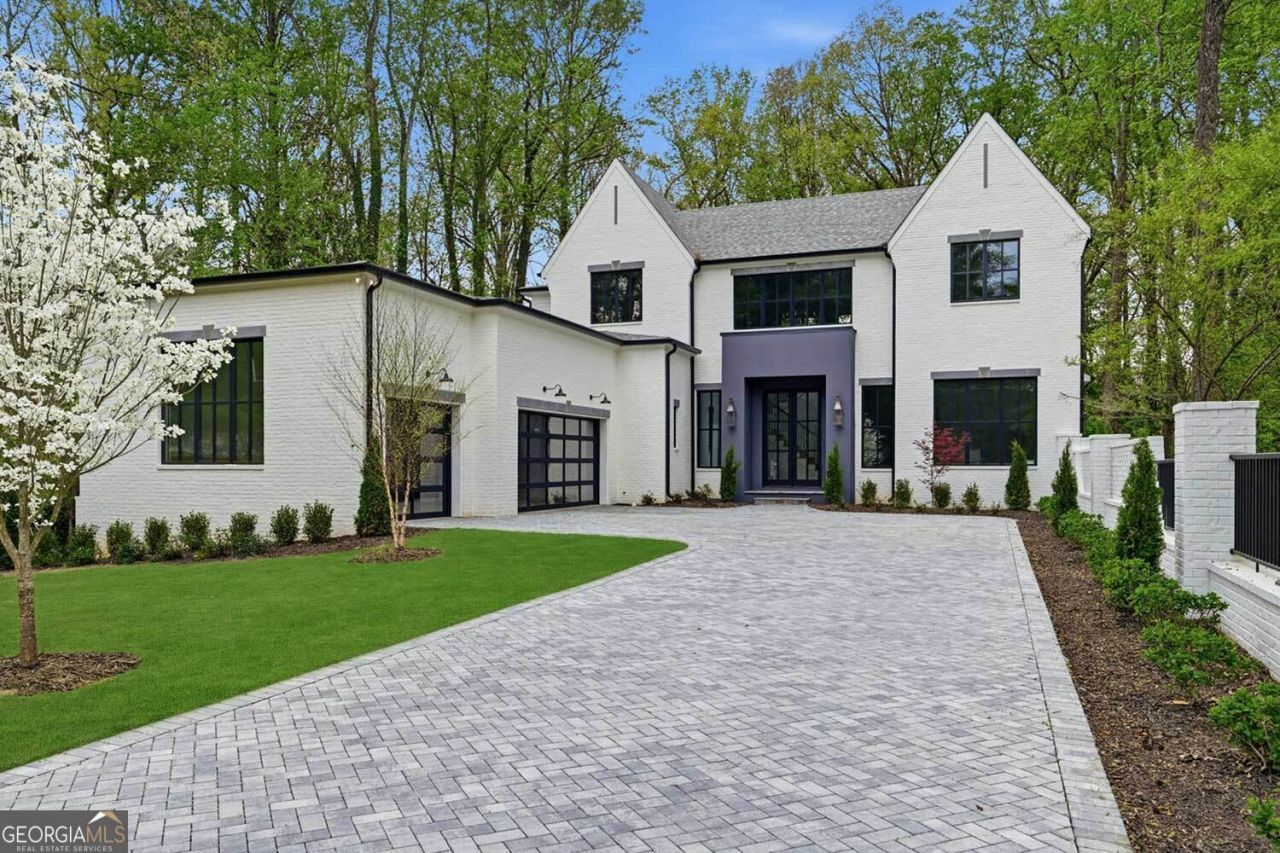 READY NOW | WALK TO DOWNTOWN ALPHARETTA. Experience an architectural masterpiece by Modernize Properties, where refined luxury meets an effortless lifestyle on a private, pool-ready lot just steps from the vibrant shops and restaurants of downtown Alpharetta. This stunning new construction home features soaring 12-foot ceilings on the main level, framing an open, light-filled floor plan defined by wide-plank white oak flooring and curated designer finishes. The chef's culinary hub is anchored by an oversized quartzite waterfall island, custom cabinetry, and a hidden walk-in pantry, flowing seamlessly into the vaulted primary suite-a serene main-level sanctuary with a spa-inspired bath and a large custom closet. A private guest suite and a dedicated home office behind dramatic glass and steel double doors complete the main floor. Transition effortlessly to the outdoors through expansive sliding doors that reveal a vaulted covered living space with a fireplace, ideal for year-round entertaining overlooking the level backyard. The upper level offers a spacious loft and three additional bedrooms, each featuring a private en-suite bath. Superior craftsmanship is evident in every detail, from the 3-car garage with 9' tinted glass doors and full paver driveway to the spray foam insulation, tankless water heater, and a massive daylight basement ready for your custom finish.