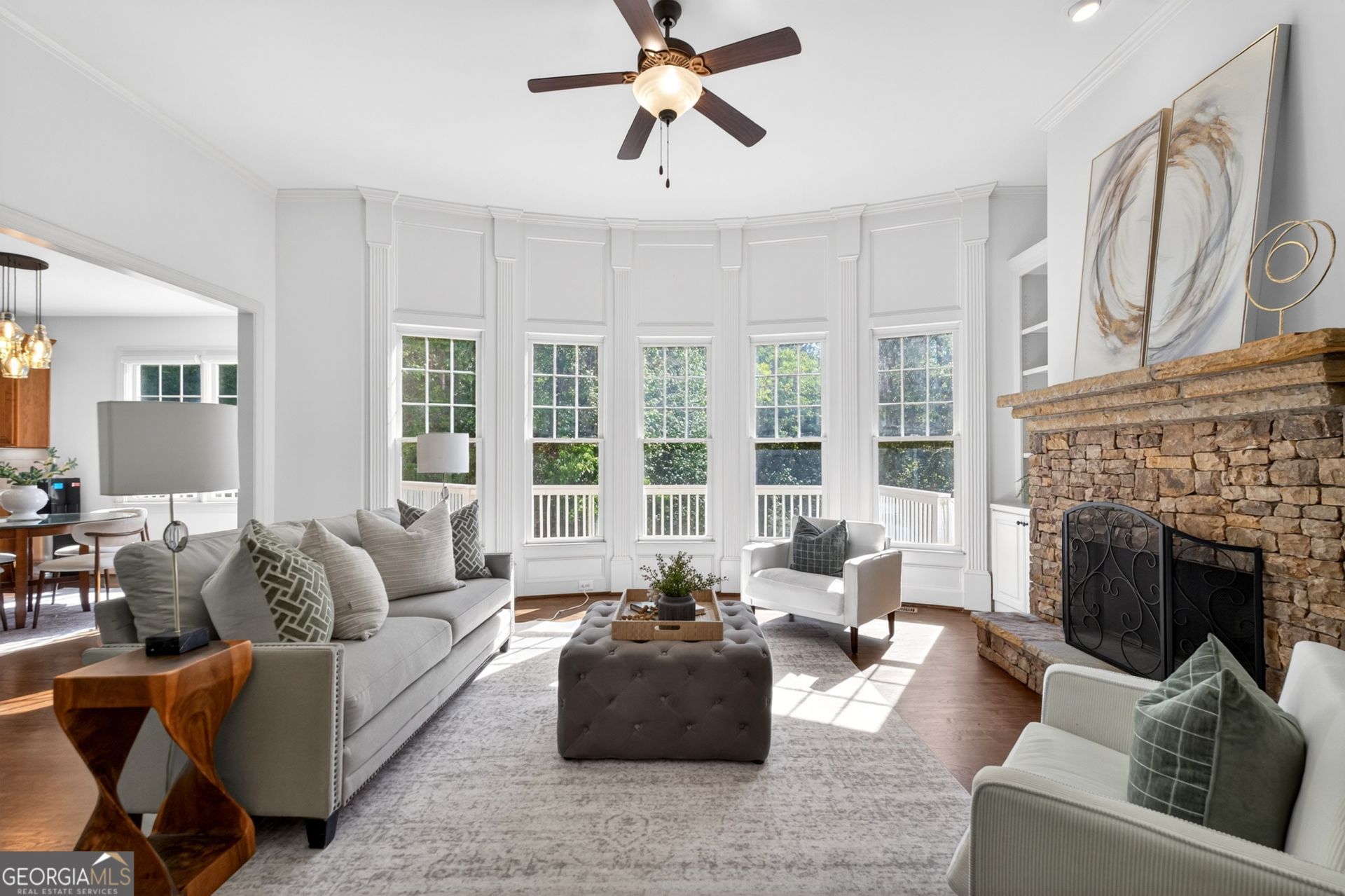 UPDATED & MOVE-IN READY IN SOUGHT-AFTER SOUTHGATE SECTION OF WINDERMERE! FINISHED TERRACE LEVEL WITH OUTDOOR STONE PATIO AND FIRE PIT - LEVEL BACKYARD - ENJOY RESORT-STYLE COMMUNITY AMENITIES INCLUDING OPTIONAL WINDERMERE GOLF CLUB MEMBERSHIP. This home has undergone a recent refresh, including new interior and exterior paint, a new deck, enhanced landscaping, and new carpeting. The heart of the home is the kitchen, recently updated to include quartz countertops and a new tile backsplash. It also has a large island, a walk-in pantry, and opens to a breakfast area and spacious great room with a stacked-stone fireplace and built-in bookcases. Also on the main level are a guest suite, a dining room big enough to accommodate a large dinner party, and a laundry room. Throughout this level, notice rich hardwood floors in a beautiful dark walnut finish. Upstairs is an oversized primary suite complete with a private sitting area, an ensuite bath, and a walk-in closet. You'll also find four secondary bedrooms, including two with private baths and two sharing a sizeable jack-n-jill bathroom. One of the secondary bedrooms with a private bath is oversized, making it a standout flex-space, ideal for use as a second living area, media room, or private guest suite. The finished terrace level offers additional living space, including a media room, recreation room with bar area, bedroom, full bath, and an office or workout room. Enjoy the outdoors with a brand-new rear deck, a stone patio with a fire pit, and a gorgeous level backyard backing to private wooded views-ideal for relaxing or hosting guests Located in the highly sought-after Windermere Golf/Swim/Tennis community, in the top-rated South Forsyth High School cluster, this well-maintained home combines space and updates for an unbeatable lifestyle. Windermere amenities include golf, swimming, tennis, pickleball, a clubhouse, fitness center, walking trails, and more. They even have a full-time activities director! Easy access to GA-400, shopping, and dining!
