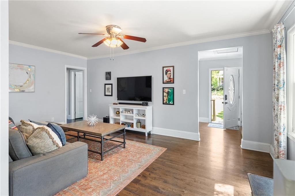 Tucked into a quiet residential area of Edgewood, yet steps to shopping and restaurants, enjoy this move-in ready home featuring easy one-level living with updated systems and an effortless indoor-outdoor flow. Inside, you'll find beautiful hardwood floors throughout, with a layout that balances openness and privacy. The kitchen features white cabinetry, stainless steel appliances, granite countertops, and generous prep space open to the dining area. French doors open directly to the back deck, creating an easy transition for everyday living and entertaining. The secondary bedrooms are positioned at the front of the home, while the primary suite is tucked privately in the rear. Light-filled and inviting, the primary bedroom features a vaulted ceiling and an ensuite bath, as well as a walk-in closet. Outdoor living is a standout, with an elevated deck and retractable awning - perfect for staying cool on a warm summer day, overlooking a large flat fenced backyard?ideal for gardening, pets, play, or hosting friends. An unfinished basement provides excellent storage and flexible space for a workshop. Truly move in ready with major systems thoughtfully updated, including a newer roof, gutters, HVAC, and water heater offering added peace of mind. Park your car and enjoy Kroger, Target, El Tesoro, Vin Wine Shop, the MARTA train and much more all less than a mile away.