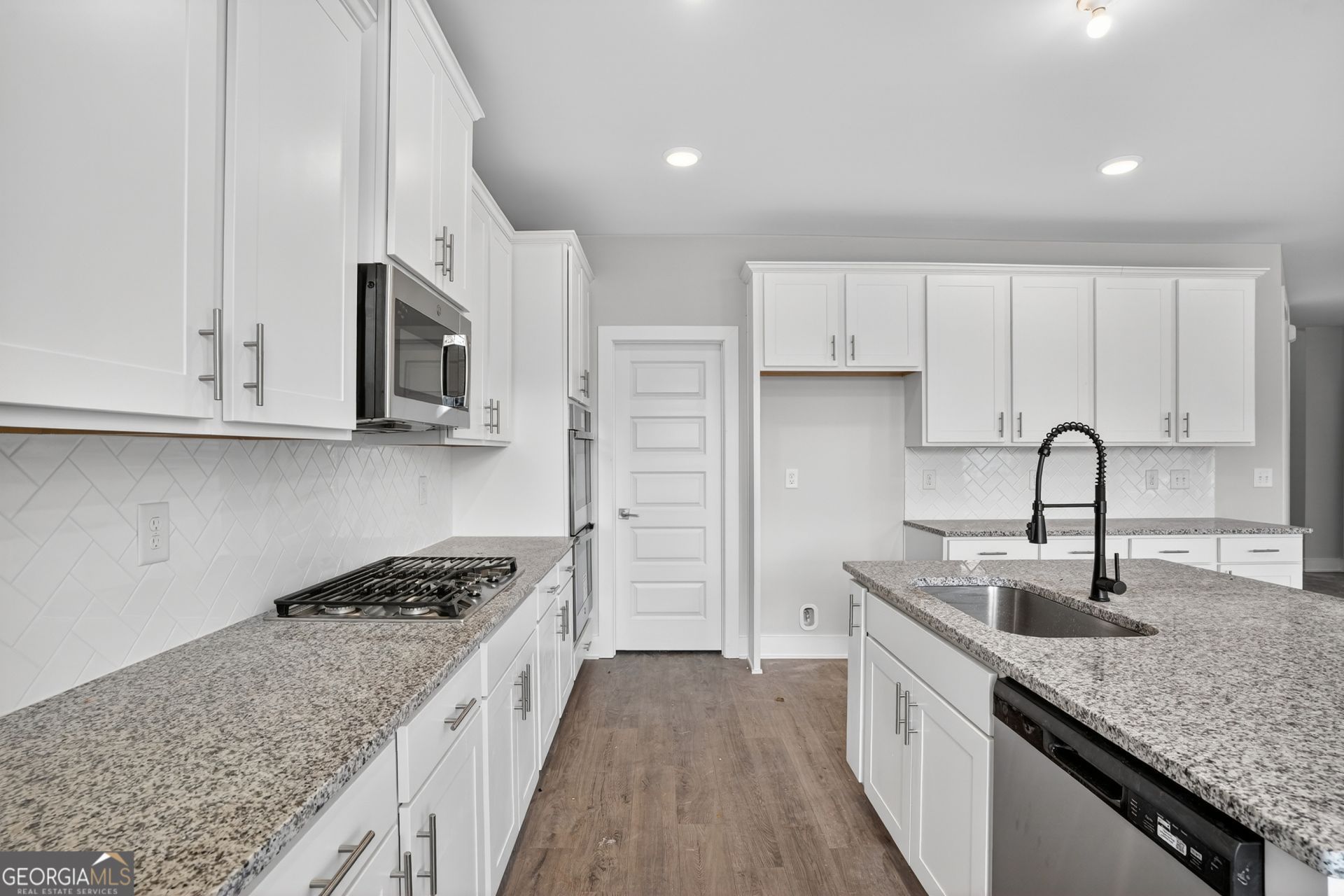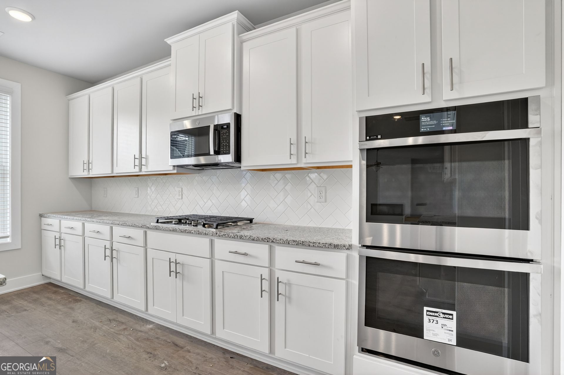 Built by Peachtree Building Group, Move-In Ready New Construction in Mirror Lake Golf Community! The Bedford floor plan on Lot 39 offers thoughtfully designed living space in the Mirror Lake community of Villa Rica. This new construction two-story home features 5 bedrooms and 3.5 bathrooms with a layout designed for both everyday living and entertainment. The open-concept main level connects the kitchen and family room, creating a comfortable gathering space. The kitchen features 42-inch soft close cabinets, granite countertops, double gas ovens, stainless steel sink with gooseneck faucet, tile backsplash, and a large island with seating and prep space. The family room includes a recessed linear electric fireplace for a modern focal point. A main-level guest suite with full bath and walk-in closet provides flexible space for visitors or additional household needs. Upstairs, the primary suite is spacious and filled with natural light from a bank of four large windows. A tray ceiling and ceiling fan add architectural detail while creating a relaxing retreat. The primary ensuite bath features a granite double vanity, soaking tub, tiled shower with frameless enclosure, and a spacious walk-in closet. Three additional bedrooms include walk-in closets, and the second-floor laundry room with linen storage adds everyday convenience. Additional features include luxury vinyl plank stair treads, open-rail stair detail with steel accents, upgraded lighting, black interior hardware, window screens throughout, and cordless blinds included throughout the home. The home also includes a two-car garage plus a separate golf-cart garage, featuring a Wi-Fi-enabled garage door opener that allows convenient access and monitoring from your smartphone. Builder is including a complimentary one-year golf membership to Mirror Lake and Chapel Hill Golf Clubs Mirror Lake amenities include two golf courses, tennis courts, pickleball courts, swimming pools, and walking trails. Conveniently located near The MILL Amphitheater, Clinton Nature Preserve, Pine Mountain Gold Museum, and historic downtown Villa Rica.