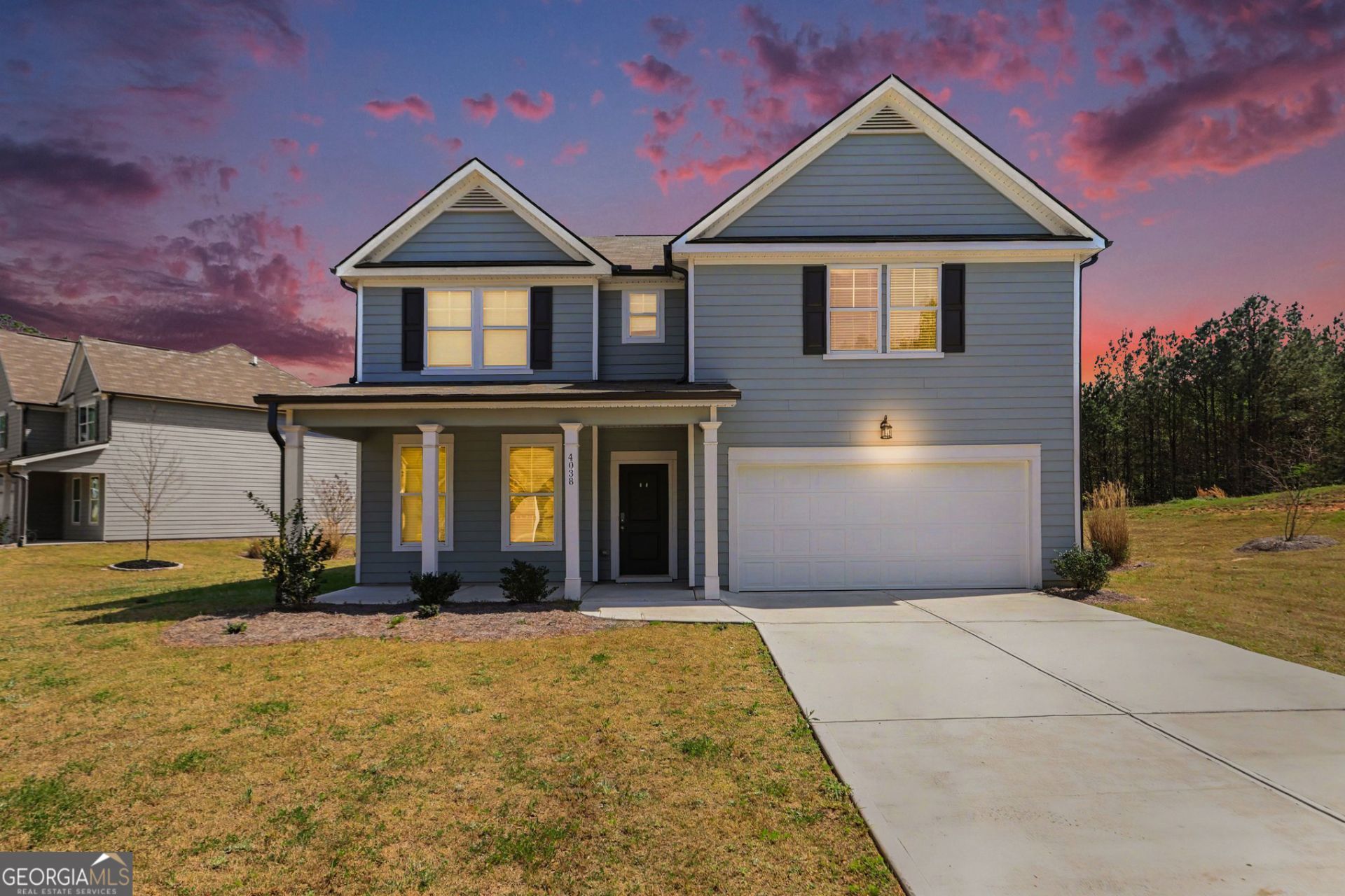 Welcome to this nearly new 4-bedroom, 2.5-bath home in the desirable Tell River community, offering modern design, functional space, and exceptional comfort. Built in 2022 and situated on a generous 0.6-acre lot, this residence combines contemporary living with a peaceful neighborhood setting. Step inside to discover a bright, open-concept floor plan filled with natural light and elevated by high ceilings and stylish finishes throughout. Conveniently located just minutes from shopping, dining, and major highways, and approximately 15 minutes from Hartsfield-Jackson International Airport, this home offers the perfect blend of suburban tranquility and city accessibility.