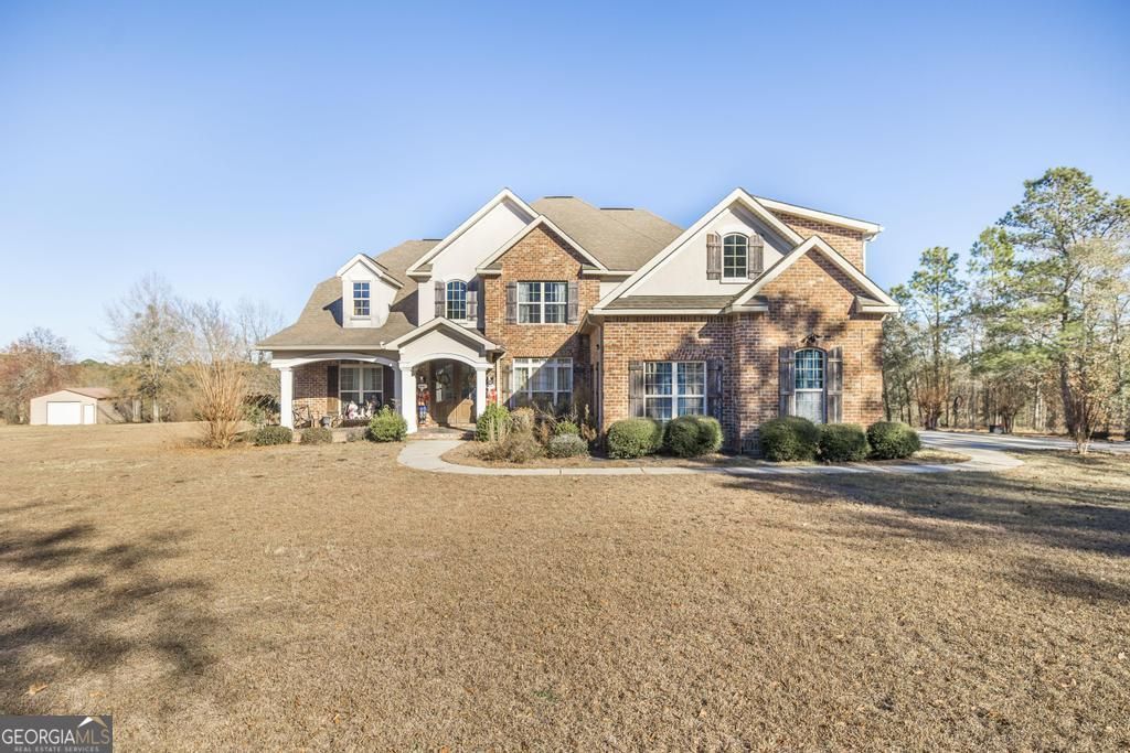 Welcome to 4065 Gordon Road, Abbeville, GA - a stunning custom-built estate offering the perfect blend of luxury, privacy, and country living on 42.6 beautifully wooded acres. This impressive 4-sided brick, 5-bedroom, 3.5-bath home boasts over 3,500 square feet of thoughtfully designed living space with very tall ceilings, elegant crown molding throughout, and eye-catching tray, vaulted, and coffered ceilings. A grand foyer welcomes you through solid wood French doors, setting the tone for the craftsmanship found throughout the home. The primary suite is conveniently located on the main level and features huge walk-in closets and a spa-like en suite bath complete with a separate tiled shower and an oversized jetted soaking tub. Two spacious living areas, each with a cozy fireplace, provide ideal spaces for entertaining or relaxing. The chef's kitchen is a true centerpiece, featuring a 6-burner gas stove, granite countertops, breakfast bar, large island, massive double refrigerator, and stainless steel appliances. Wood flooring flows through the main living areas, while tile flooring highlights the kitchen and wet areas. A formal dining room, updated lighting, fresh paint, and new carpet complete the interior upgrades. Step outside to your private oasis with a gorgeous in-ground pool with diving board, perfect for summer gatherings. Enjoy the outdoors year-round from the screened patio, all surrounded by serene wooded acreage ideal for hunting, horses and chickens, hiking, wildlife watching, and ultimate privacy. Additional features include: SMART home technology for modern convenience, Surround sound throughout, 3-car garage, Brand new AC unit, Tons of storage throughout, 40' x 75' concrete pad already poured and plumbed - ready for a large workshop or barn, Peaceful country setting just a short drive to local amenities! This rare property offers space, privacy, luxury, and versatility - a true retreat with room to live, work, and play.