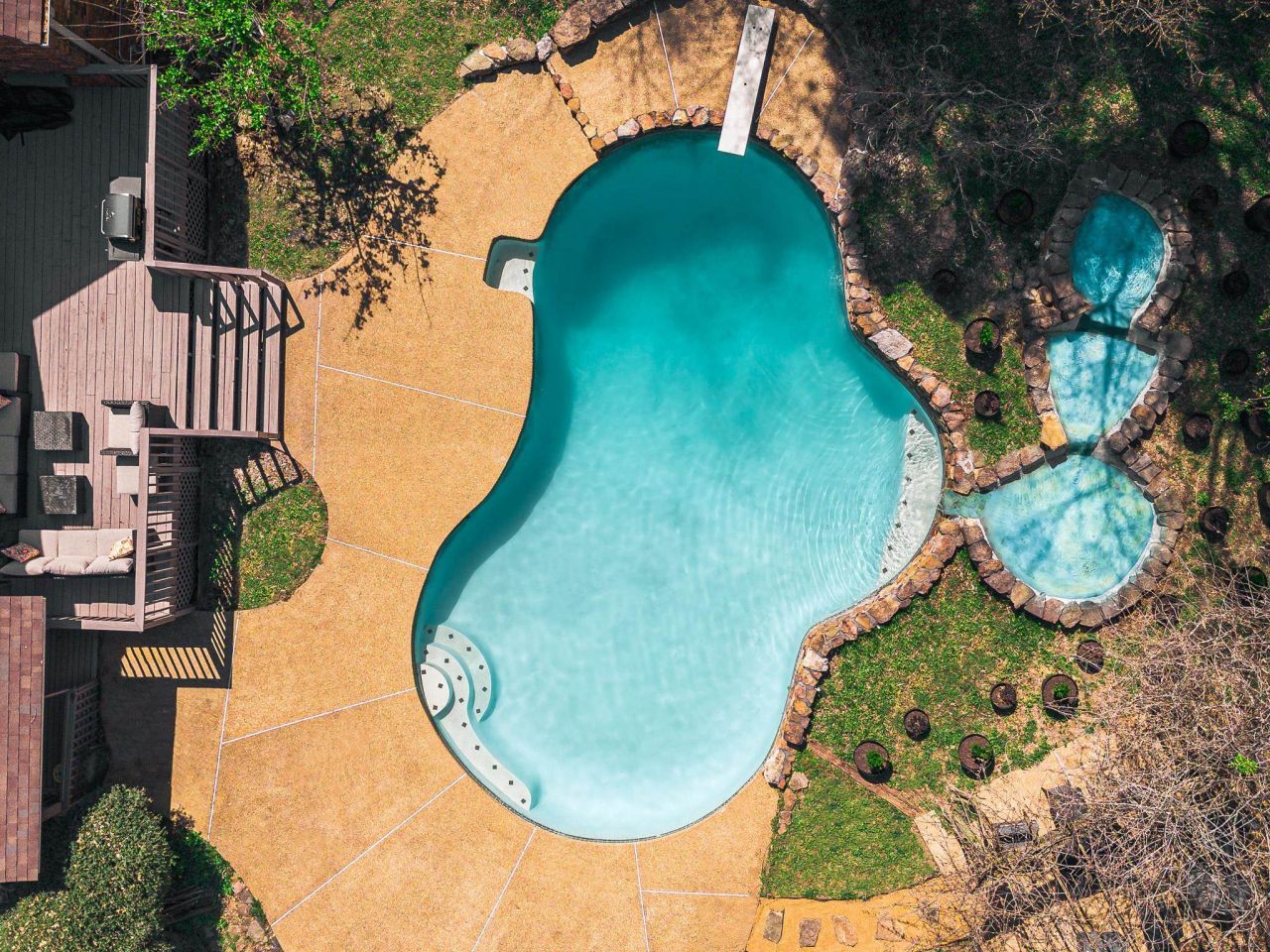 Great private estate with easy access to Hwy 385, offering space, seclusion, and future potential. Situated on approximately 5 acres with mature trees, open pasture, and a wooded buffer for a truly private backyard. Outdoor living shines with a large gunite pool and waterfall, expansive deck overlooking your land, separate covered deck, and welcoming front porch?ideal for relaxing or entertaining. Inside features a remodeled, functional layout with a downstairs primary suite and two additional bedrooms. Upstairs offers a massive media room with full bath and a bonus room above the garage, perfect for office or flex space. A bright sunroom adds charm. The oversized kitchen allows eat-in or casual living space, while the den and living room feature a fireplace. Cleared adjacent lots with road access offer privacy, resale, or development options. Near Herb Parsons Lake and trails. Private, versatile, and rare to find.
