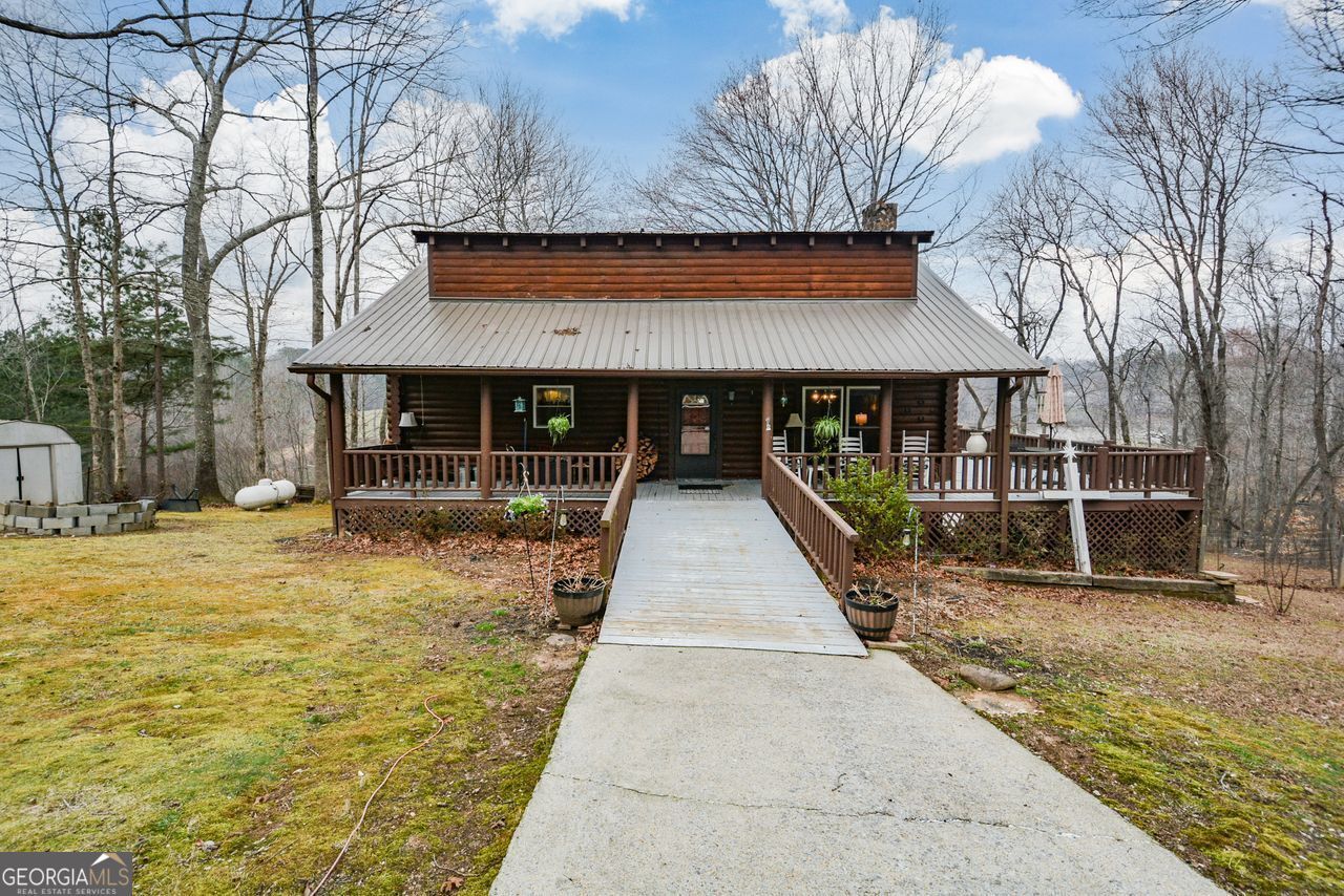 Welcome to 420 Ed Church Rd, your own private retreat nestled on 2.3 beautiful acres! This rustic cabin style home has an open floor plan with the Owners Suite on the main level, updated Kitchen, beautiful wood floors throughout, and a cozy wood burning stove in the Family Room. There is a loft bedroom and full bath upstairs, and a finished basement below with an additional bedroom, full bath, private entrance, and covered patio- the perfect place to enjoy the gorgeous sunsets over the lake! There is a fenced area in the front, a charming covered front porch, separate covered parking, and plenty of room for gardening. This charming home just hit the market...don't miss it!