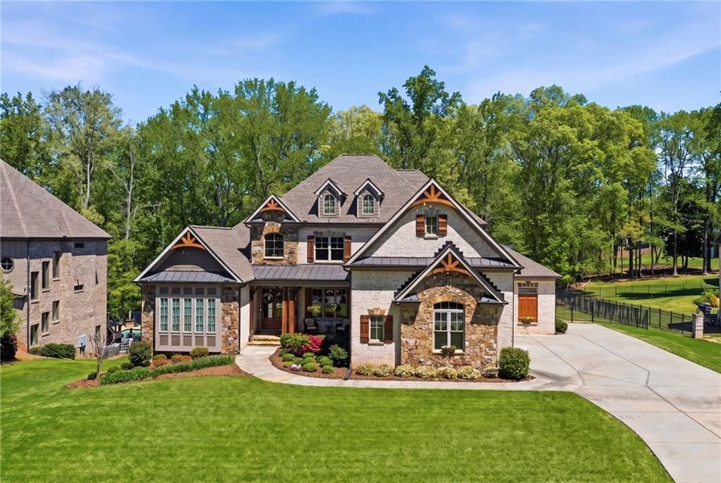 BUFORD CITY SCHOOLS - GATED COMMUNITY - 8 Beds 6 1/2 Bath - Basement In Law Suite. This spacious family home offers both comfort and character. Inside, you'll find a Chef's kitchen featuring sleek stainless steel appliances with double oven , crisp white cabinetry and large island perfect for family meals or entertaining guests. Around the corner you will find a large pantry, a laundry room with extra space, mud room and a side entry door. The formal dining room is generously sized and boasts windows overlooking the rock front porch and landscaped front yard. The dining room offers plenty of space for a large dining room table. Off the kitchen is a keeping room with cedar beams that allows the perfect amount of natural light to bounce off the dark hard wood floors. A few steps off the kitchen you will find a brick covered porch with a fireplace and rock floor. This inviting space is ideal for enjoying morning coffee or evening relaxation while taking in views of the expansive backyard and wide life. On the opposite side, a door leads to an open deck for grilling and outdoor dining. The main floor, open concept, has a large family room, cedar coffered ceiling, lighted bookshelves, rock fireplace and allows ample seating. Main floor primary bedroom is oversized with a sitting area and has vaulted ceilings with cedar wood beams. Primary bath has double vanities, stand alone tub, and oversized shower which leads into a huge closet. Upstairs you find four oversized bedrooms. Two rooms with full baths and two rooms share a Jack and Jill. Each upstairs bedroom has a walk in closet. Basement has a full In-Law Suite with two bedrooms, living and dining area and laundry room. Living area also has a rock fireplace and book shelves. The basement bath has a double vanity, separate shower and walk in the closet. The walk in shower and the wide hallways allow easy access if needed. Basement also has a gym and two large storage spaces. Basement has an additional room for an office or study. The basement has two entry points and walkway to the driveway off the covered patio. The exterior is just as impressive, with mature landscaping. Additional features include fenced in flat back yard. This home has a Pest Ban System and Central Vacuum System. Owner/Agent