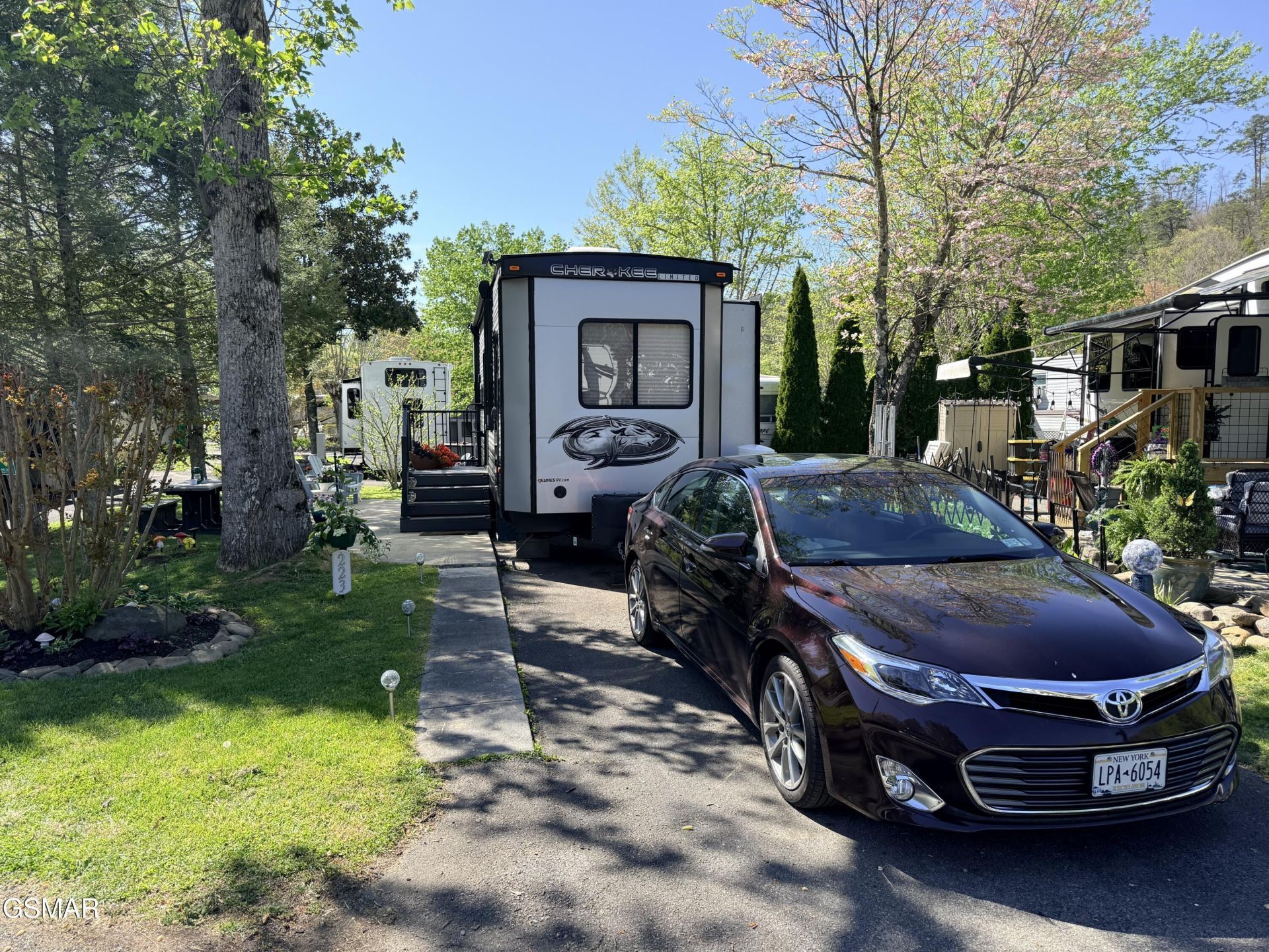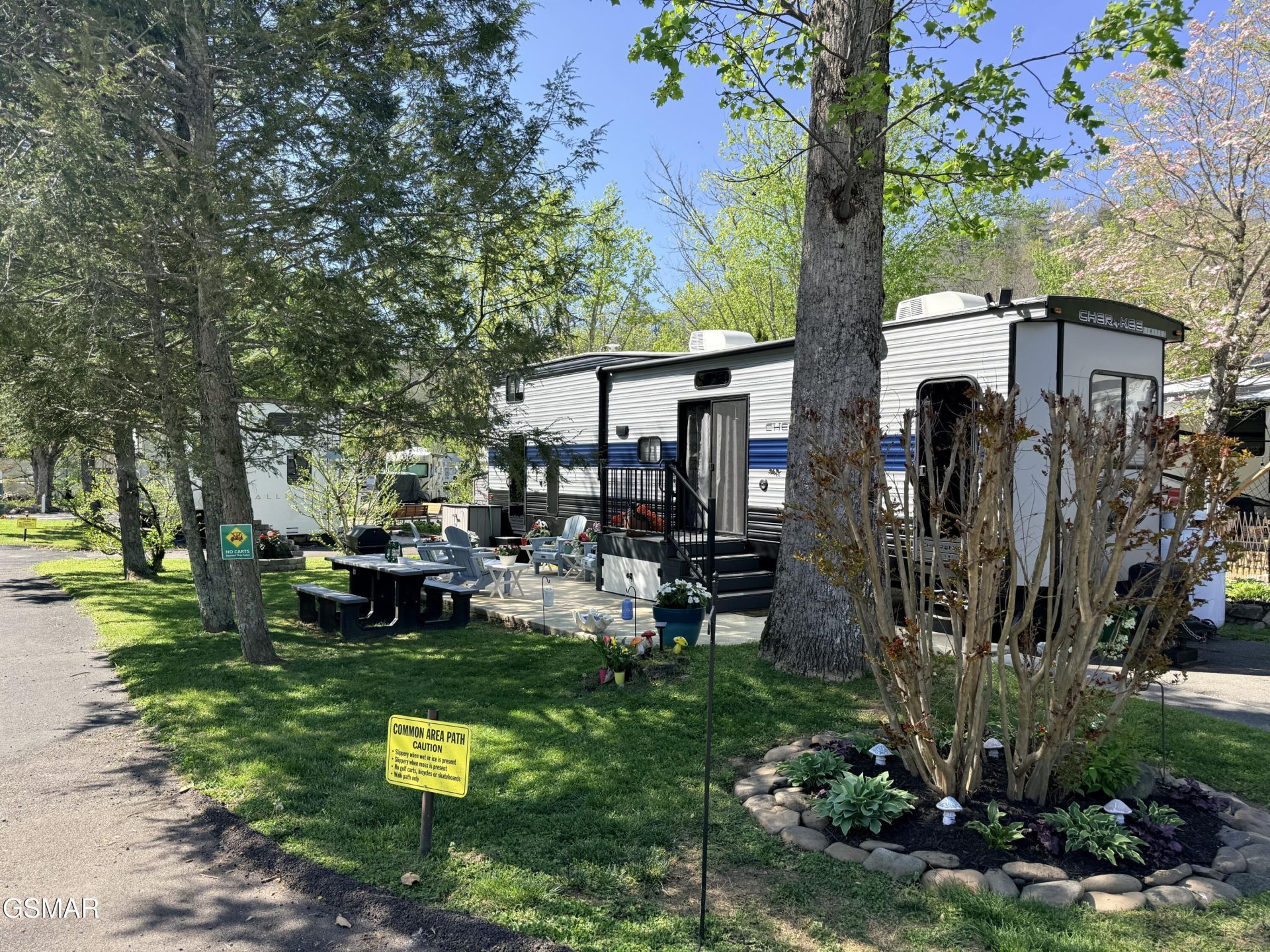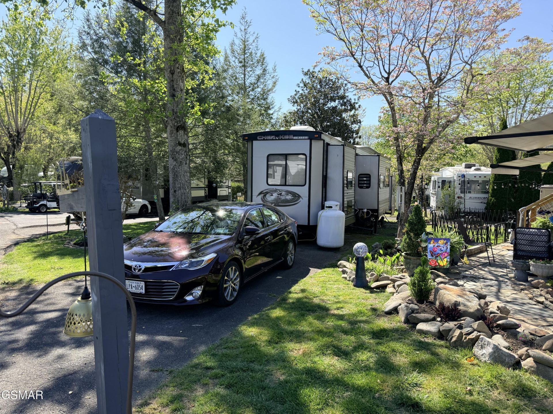 Absolutely GORGEOUS RV lot in the most sought after RV resort in the Smokies! This level lot is beautifully landscaped with both shade trees and ornamental trees/bushes along with a nice side yard. Lot includes ADA compliant picnic table, built in grill, cathedral firepit, and large shed. This is the perfect gathering place to make unforgettable memories with your family and friends. Lot is located on the 'quiet side' of the resort and is just steps away from a public bathhouse and the adult pool. Included with the lot is a pristine 2021 Forest River Cherokee 39CA destination camper. You and your family will enjoy this spacious camper with triple slide outs, an extra living space for your kids or guests with its own full bathroom and a loft to be utilized as a bedroom with the bunk mats or for storage. Living room has sofa bed, big screen TV, electric fireplace, and u-shaped dinette where everyone can sit for a family meal or for game night. Kitchen features a residential refrigerator, stove/oven, microwave, and a full walk-in pantry. Master bedroom has queen bed, closet, washer/dryer hookup and its own private entrance. Master bath features residential style full flushing toilet, shower, and sink. 2nd bedroom has full size sofa bed and can also be used as an office. 2nd bedroom has its own complete bathroom with toilet, sink, and shower. This bathroom also has its own private entrance which is great for use when entertaining outside. In addition, there is a Loft with 2 twin memory foam mattresses for additional sleeping or can be used as extra storage. Camper has been equipped with several desirable upgrades including a tankless on-demand water heater, solar panels with 100hr backup batteries, added insulation underneath consisting of 10in fiberglass and 3in foam board, and a large cartridge water filtration system.You have to come see this for yourself....You will just love this lot and camper!!! This makes a perfect Smoky Mountain vacation spot, permanent residence of your very own, or a short term rental. Outdoor Resorts is a beautiful luxury vacation resort campground with deeded lots that is snuggled in the Smoky Mountains and is open ALL year round. Lot owners own their individual lot and a portion of the common areas. The park is maintained by the Home Owners Association. Fees include water, sewer, cable, internet and garbage pickup. Electric is provided by Sevier County Electric and is billed directly to the lot owner. Bottle gas is on site if needed for an additional charge. There are ample amenities including 2 swimming pools, 2 mountain streams, a catch and release fishing lake, basketball courts, mini golf, horseshoe pits, shuffle board court, playground, game room, activities center, camp store/cafe, and a recreation hall with library and coffee bar. Condo fees are billed quarterly at $700.00 Outdoor Resorts is a PUD Condominium. Information is deemed reliable, Buyer to satisfy themselves as to accuracy.