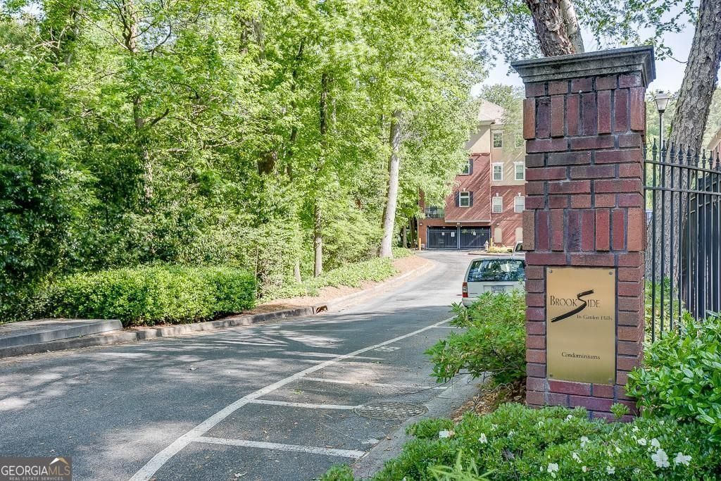 A condo with a large private yard-incredibly rare! Completely stepless - park in the garage and take elevator to first floor. Welcome to this tucked away building perfectly situated between Midtown and Buckhead in Brookside in Garden Hills, a hidden gem within an exclusive Buckhead community. This much-loved & beautifully maintained split-bedroom, stepless main-level condo offers exceptional value and a standout feature: a private, first-floor fenced courtyard with access from both the living room and owner's suite-ideal for a dog, entertaining, grilling, or simply enjoying peaceful outdoor living. Thoughtfully selected by the original owner (she worked for the builder and had first choice) for its privacy and serene setting, the home features hardwood floors, a fireplace, built-in bookcase, and abundant natural light throughout. The secure, boutique 3-story building is set well off Lindbergh Drive overlooking Sharondale Drive, with a separate guest entrance and ample free guest parking. Residents enjoy a pool, fitness center, dog walk, secured garage, and private storage, with HOA dues covering water, security, trash, recycling, sewer, and landscaping. Surrounded by mature trees, a small brook, and a 3-acre nature preserve, the setting feels like a mountain retreat-yet is easily walkable to KR SteakBar, Krog Bar, The Tree House, Savi Provisions, MARTA, and the vibrant Uptown Atlanta development, with easy access to Peachtree Hills, Buckhead Village, Bobby Jones Golf Course, and GA-400, I-85, and I-75-offering the perfect blend of nature and city living.
