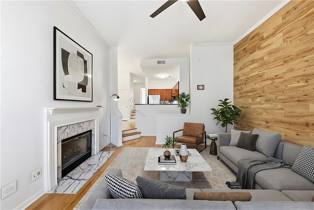 SPRING FEVER PRICE IMPROVEMENT_Imagine living in this bright 1BR/1BA condo in the secured gated community of River Green. This desirable end unit (#508) is located in the back corner of the community, offering added privacy. Conveniently park in your own one-car garage then head upstairs to an open living area, featuring a gas fireplace and double doors leading to a private patio. The kitchen has stainless steel appliances and granite countertops, there is a separate dining area, and additional office/flex space too. The bedroom offers natural sunlight overlooking the front of the unit, and is spacious with wood floors, a ceiling fan and a large custom closet including shelving and drawers. Bathroom includes step-in shower with glass sliding doors and tile floor. Community amenities include two pools, clubhouse, fitness center, and business center in a park-like setting near the Chattahoochee River. Conveniently located it offer easy access to Vinings, Buckhead, and Midtown. Kitchen refrigerator, washer and dryer all stay with the property. Owners have key fob access and can buzz guests in.Agents: lockbox (508) is on the board at the dog park BEFORE you arrive at the gate, key and gate fob are both in Supra box. Seller believes all information provided is accurate but Buyer should research to confirm.