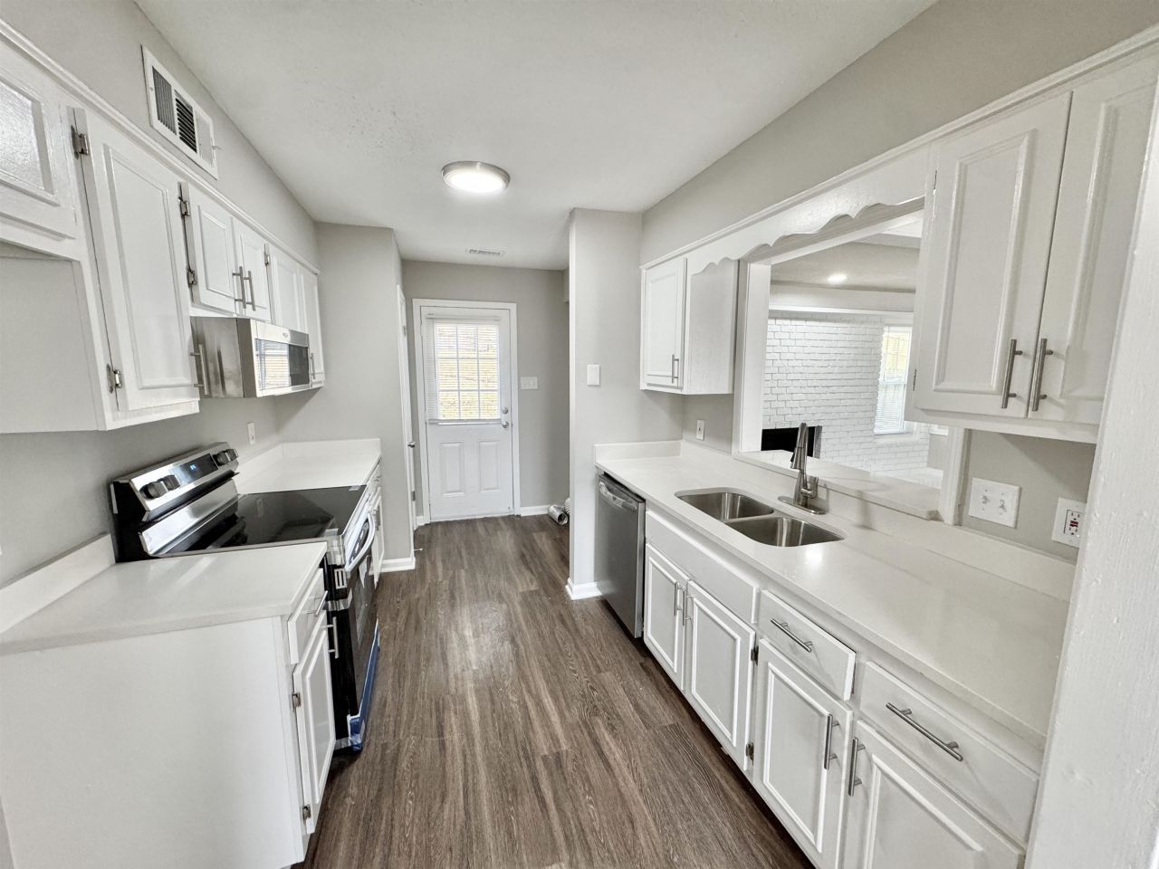 Spacious and beautifully updated 4-bedroom home! This inviting property has been refreshed throughout with bright Chantilly Lace paint, complemented by matching lights, fans, and upgraded door and cabinet hardware for a clean, modern look. Step inside to a generous, welcoming layout featuring wood laminate flooring in all main living areas and plush new carpet with padding in every bedroom. The kitchen shines with granite countertops and all-new stainless steel appliances, offering a fresh and functional space. Both bathrooms have been fully renovated with stylish shower surrounds, framed mirrors, and upgraded faucets, creating beautifully coordinated and contemporary spaces. Outside, enjoy a fenced yard perfect for entertaining family and friends or giving pets room to play. Move-in ready and thoughtfully updated, this home blends comfort and modern style throughout.