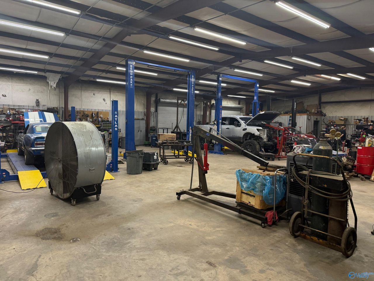 This property contains a huge 60x80 shop with 8 bays and 6 roll-up doors. It will include 5 total lifts and a waste oil heater. This is currently a running mechanic shop. This also includes a 14x28 office with an all new split unit, siding, front porch, doors, and windows all replaced within the last 2 years. The roof on the office is 3 years old. There is a 2 bay shop located beside the office area with a full bathroom. As well as the shops, there is an 800 square foot 2 bedroom 1 bathroom house that has all new flooring.