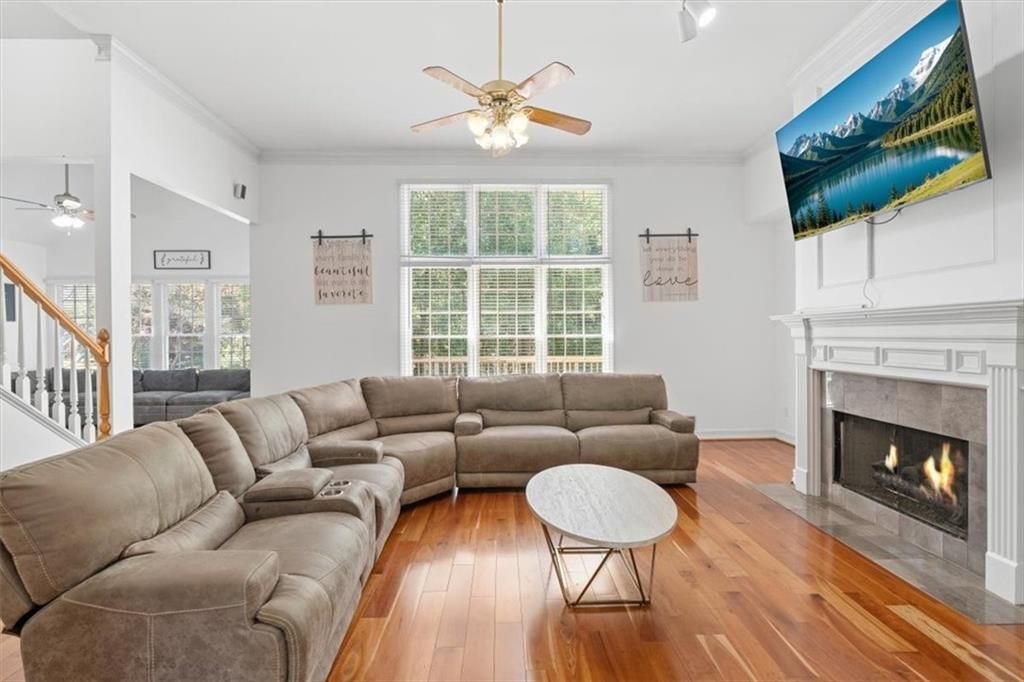 Beautiful home in sought after Riverfield Community. Features open concept living spaces, two story family room, keeping room, eat-in kitchen, open dining room and hardwood floors connecting them. Kitchen features granite countertops, stainless steel appliances, large laundry room and panty. Oversized master on main with beautiful master bathroom and the biggest closet you will ever see (I think a room was converted to make this closet). Upstairs features large secondary bedrooms, with jack and jill bathroom and the other with private bathroom. The basement is partial completed with bedroom, game room and full bathroom just needing a drop ceiling. Lots of unfinished space for you to complete as you wish. There is wonderful outdoor space with large deck, covered patio below, and space to play. Riverfield is a sought after community with pool, tennis and it connects to the park for walking trails, fishing and relaxing view of the Chattahoochie River.