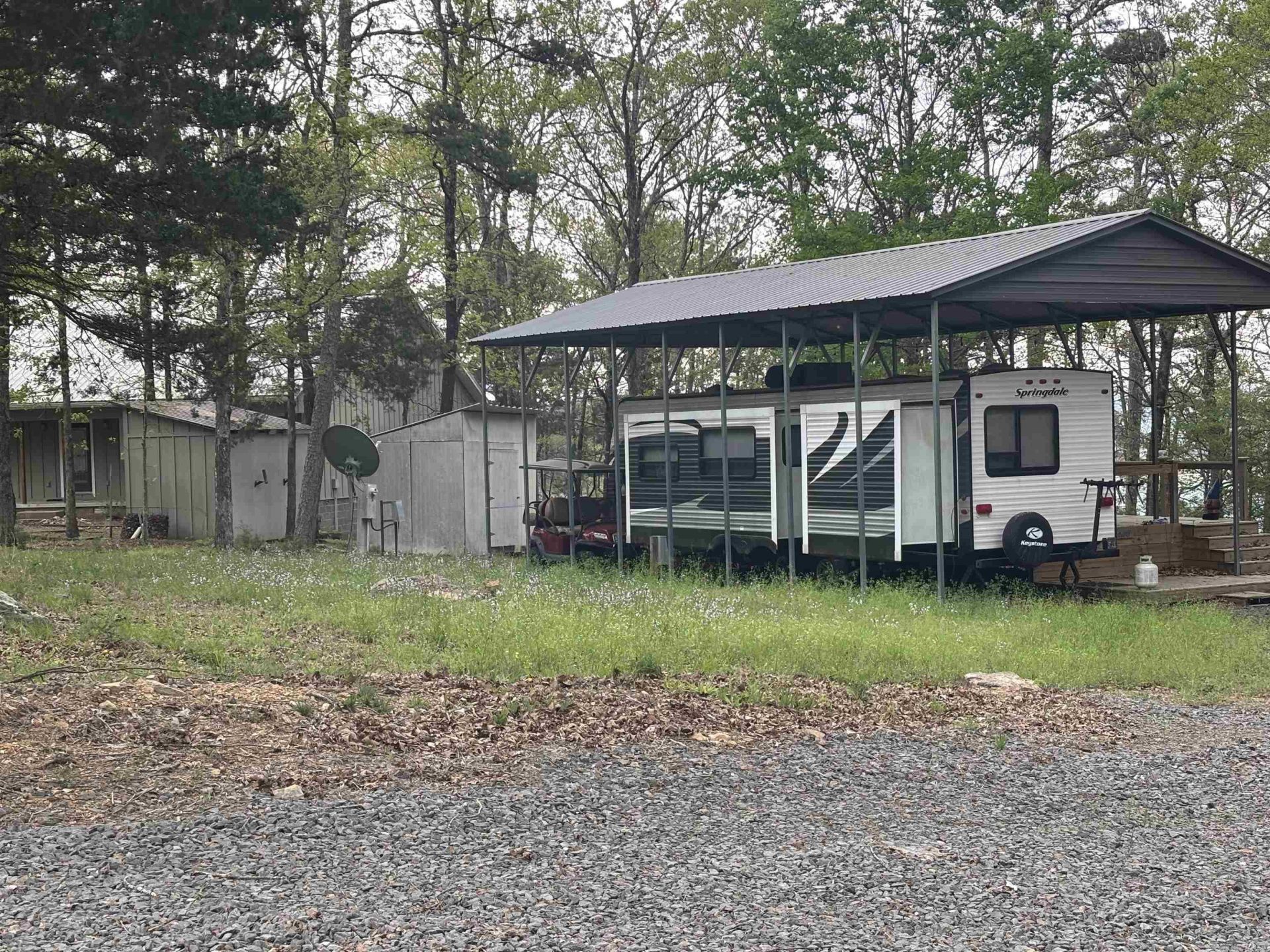 Lake front property on Greers Ferry. Has a remodeled RV trailer, deck, metal enclosure, utility shed, septic tank, gravel driveway, permitted path to lake, 2 jet skis, 1 golf cart, and 1 BOAT SLIP in the neighborhood marina. Rare find and will sell VERY fast at this price. Property address is 441 Cherokee Circle, Greers Ferry, AR, 72067.