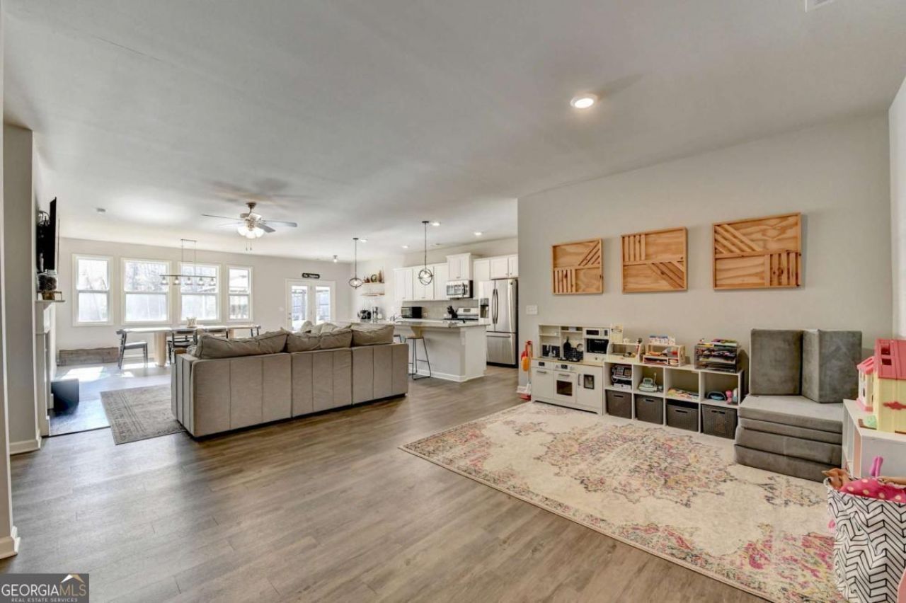 Welcome to this gorgeous 3-bedroom, 2-bath Craftsman-style RANCH home, with beautifully designed open plan living on a large, LEVEL, FENCED LOT, all within the highly sought-after FORSYTH COUNTY SCHOOLS district! Step from the welcoming front porch with stone accents into the hardwood foyer that opens to a bright, OPEN-CONCEPT layout. To your right, a large, versatile FLEX SPACE offers endless possibilities-ideal for a home office, playroom, or cozy sitting area. The spacious family room with a warm and inviting FIREPLACE flows seamlessly into the gourmet kitchen that features abundant CUSTOM CABINETRY, GRANITE countertops, STAINLESS STEEL APPLIANCES and a HUGE CENTER ISLAND with DOUBLE SINK, tile backsplash and 5 BURNER GAS RANGE, perfect for the family chef! The adjoining DINING AREA is filled with natural light from large windows, creating the perfect space for everyday living and entertaining. A bright BREAKFAST/FLEX AREA opens to the patio and level, private backyard, one of the LARGEST LOTS in the neighborhood! The romantic master suite is a relaxing escape with a tray ceiling, accent wall, and a spacious en-suite bath featuring double vanities, a large shower and a spacious WALK-IN CLOSET. Two large additional bedrooms, each with stylish wall accents, share a secondary bathroom with custom cabinetry, and a shower/tub combination. Additional features include a spacious LAUNDRY/MUD ROOM with easy entry from the garage and ample storage throughout. Enjoy the outdoor patio with a PERGOLA complete with a ceiling fan and a FIRE PIT area perfect for cool evenings. The expansive backyard with PRIVACY FENCING backs up to a NATURAL BARRIER THAT WILL NEVER BE BUILT ON, creating a true outdoor oasis. Enjoy resort-style living with neighborhood amenities including a clubhouse, POOL with SEPARATE KIDS' POOL, TENNIS COURTS, and PLAYGROUND-all just minutes from shopping, restaurants, schools, downtown Cumming and Dawsonville and GA400. This stunning home has been immaculately maintained by the ORIGINAL OWNERS! Offering the perfect blend of style, space, and privacy, this is the perfect place to call home!