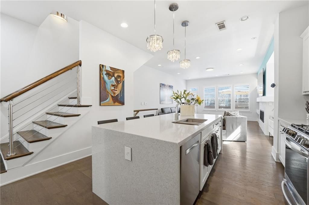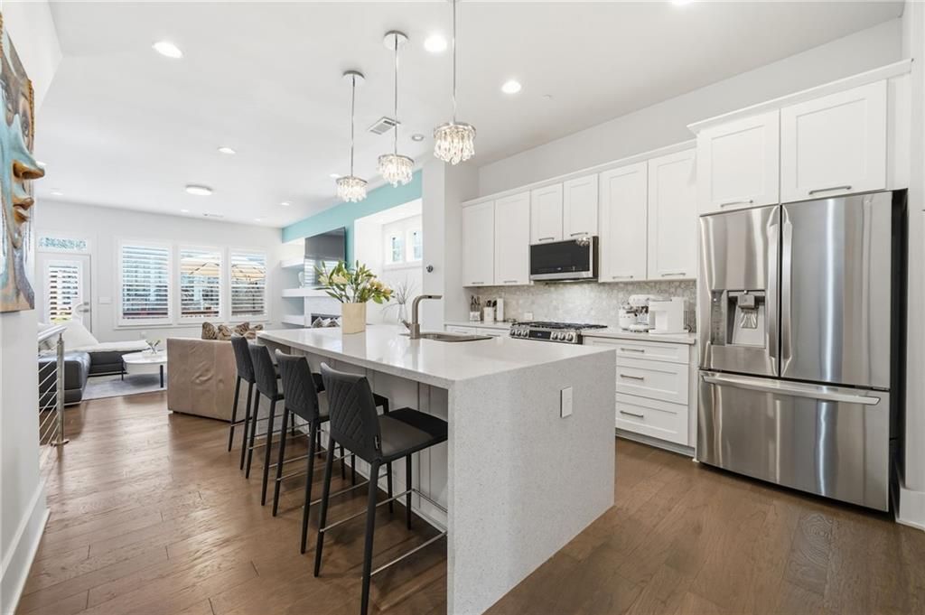 Located in the heart of Sandy Springs, this stunning 3-bedroom, 3.5-bath townhome in the highly sought-after Alderwood on Abernathy Townhomes offers modern luxury and unbeatable convenience. Nestled within a gated community, this updated home is flooded with natural light and features beautiful wood floors, high-end fixtures, and an open-concept layout designed for today's lifestyle.The chef's kitchen boasts quartz countertops and overlooks the spacious living room, complete with a striking stone gas fireplace?perfect for entertaining or relaxing. A separate dining room provides the perfect setting for formal gatherings or everyday meals.The oversized primary suite is a true retreat with beamed ceilings, a stunning spa-inspired bathroom featuring double vanities, a separate shower, soaking tub, and an expansive custom California closet.A terrace-level bedroom with full bath provides ideal flexibility for guests, a home office, or multi-generational living. Enjoy outdoor living on the private back deck, plus resort-style community amenities including a pool and tennis courts.Ideally located near GA-400, shopping, dining, trails, top schools, downtown Sandy Springs, and the Perimeter Center, this exceptional townhome combines style, comfort, and convenience in one perfect package.