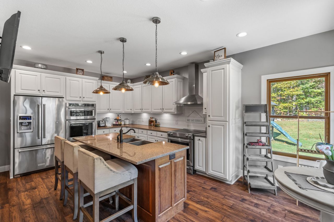 Charming Rural Farmhouse Retreat with Modern Comforts - 3BR/2BA with 2 fireplaces.Welcome to your dream farmhouse ??? a perfect blend of rustic charm and modern luxury. This stunning 3-bedroom, 2-bath home offers an inviting open floor plan with thoughtful details and abundant natural light throughout.Step inside to find gorgeous stacked-stone fireplace with an enclosed wood heater in the great room that creates a warm, cozy centerpiece for family gatherings. The spacious kitchen features quartz countertops, a large island with eat-in bar, barn doors, and a walk-in pantry ??? perfect for the home chef. A formal dining room offers space for special occasions, while all bedrooms are conveniently located on one level for easy living.Bonus spaces abound ??? including a 1,400 sq. ft. ''man cave'' or recreation room complete with a wet bar, refrigerator, another fireplace and upgraded appliances. There's storage galore throughout the home, giving you room to spread out and stay organized.Enjoy your mornings with coffee on the covered front porch overlooking a beautifully manicured lawn, or unwind on the back deck surrounded by the peace and beauty of the countryside. This lovely rural setting offers space for gardening, outdoor entertaining, and wildlife watching, all while providing the comfort and convenience of a thoughtfully designed modern farmhouse.A must-see to truly appreciate, this property has it all ??? comfort, craftsmanship, and countryside charm. Schedule your private tour today and experience farmhouse living at its finest!