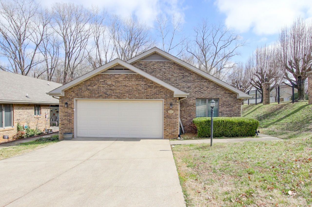 Welcome home to Canterbury Condos in the heart of Clarksville! Located at 457 Country Club Ct, this rare detached, freestanding, all-brick, flat condo offers the perfect blend of low-maintenance living and spacious comfort. With 1,555 square feet, this 2-bedroom home also features a versatile flex room-ideal for a home office, hobby space, or guest area. The large living room is warm and inviting with a cozy gas fireplace and beautiful built-ins, creating the perfect spot to relax or entertain. You'll love the bright Florida room, offering additional living space to enjoy year-round. The kitchen comes equipped with refrigerator, dishwasher, stove and microwave. Additionally, an upright freezer, washer and dryer remain! The primary bath has separate shower and whirlpool tub. Major updates in 2025 include HVAC, waterproof LVP flooring, and water heater, giving you peace of mind. And with no carpet, maintenance is a breeze. The HOA covers water and exterior maintenance, so you can spend more time enjoying the community amenities, including the in-ground pool and clubhouse.