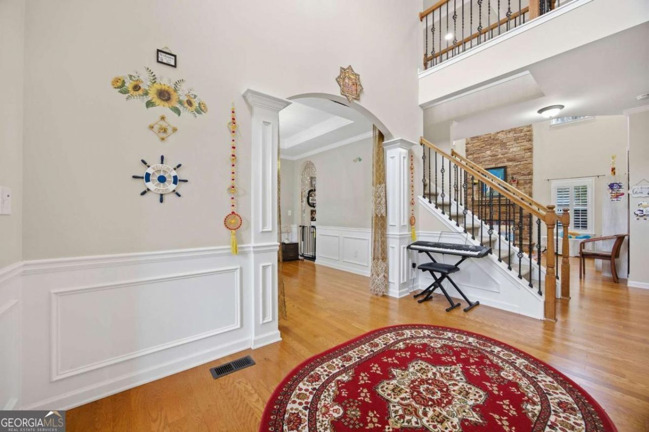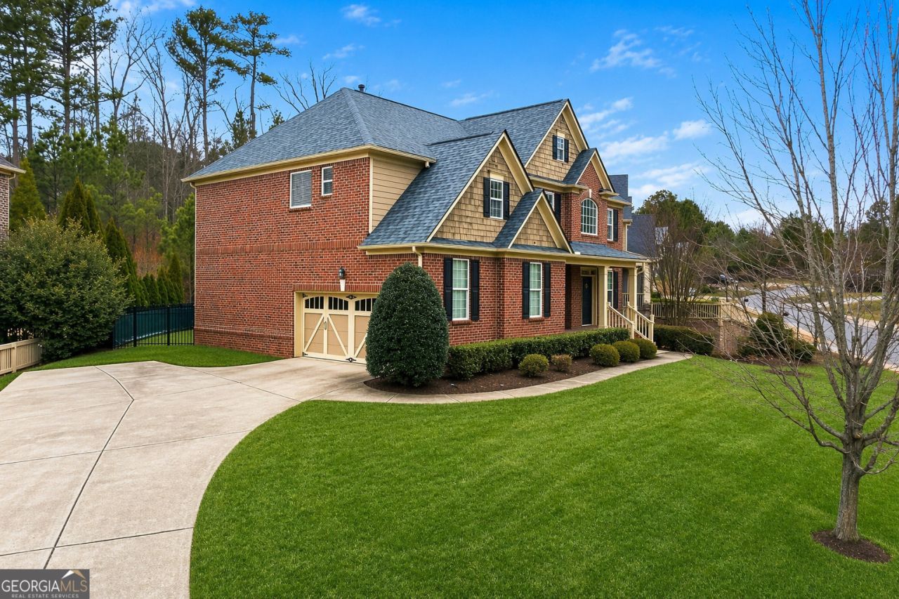 EAST-FACING HOME in sought-after Brandon Hall + AWARD-WINNING South Forsyth schools! This 3-sided brick, 5 bed / 3 bath home offers a bright open floor plan with a 2-story great room, coffered ceiling & stacked stone fireplace. Gourmet kitchen features granite countertops, center island, stainless steel appliances & built-in desk. Main level includes guest suite with full bath, office/den & formal dining. Upstairs boasts an oversized owner's suite with spa bath (double vanity, garden tub, separate shower & walk-in closet) plus 3 additional bedrooms & laundry room. Unfinished terrace level ready to customize. Private fenced backyard + side-entry garage. Enjoy resort-style amenities: Jr Olympic pool w/ slide, tennis, basketball & playground. Prime location near shopping, dining & more-don't miss this opportunity!