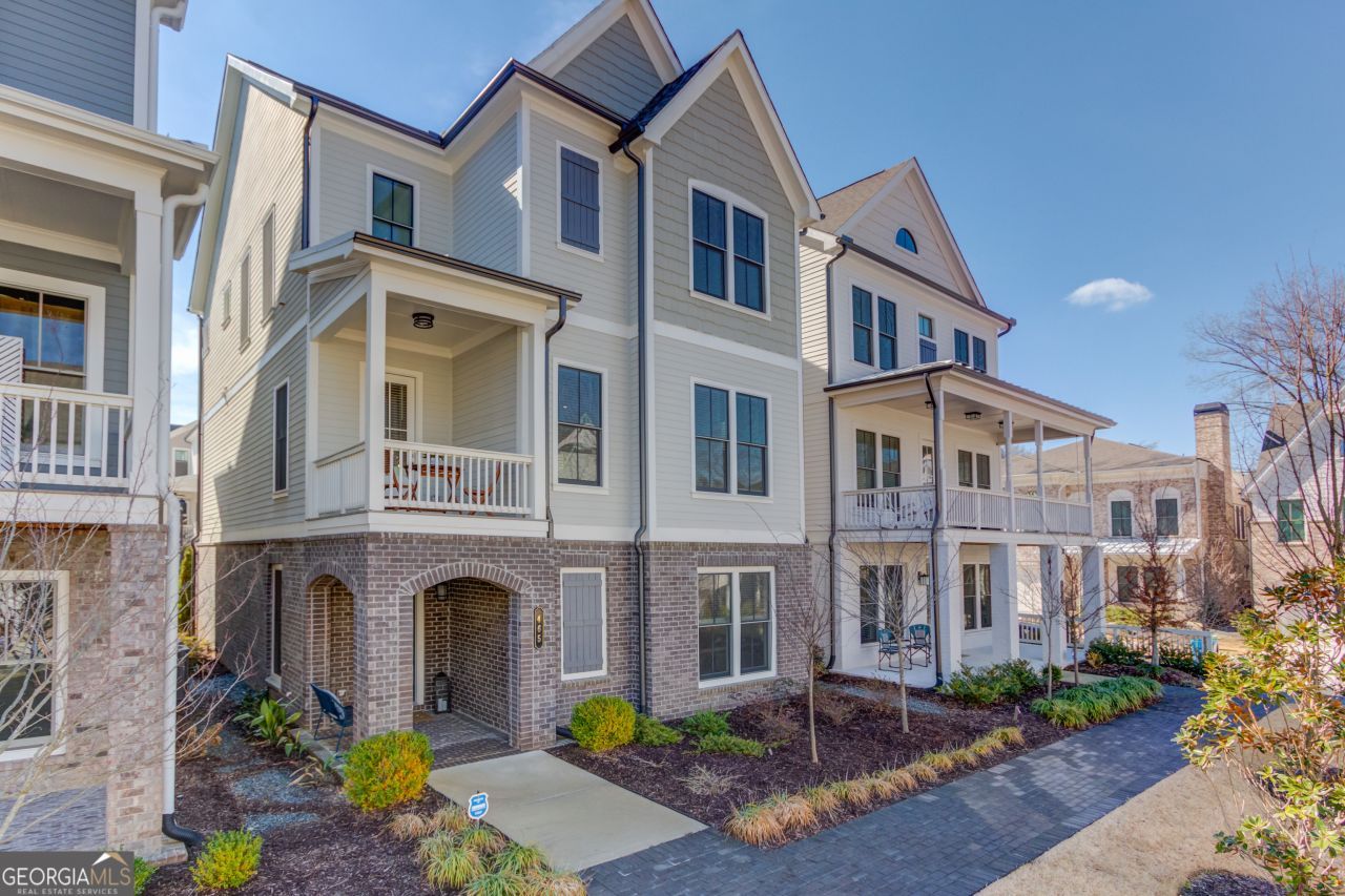 URBAN LIVING MEETS SUBURBAN TRANQUILITY! Perfectly situated in the heart of Downtown Alpharetta, near Town Green, Avalon, and Alpha Loop, this home offers a walkable lifestyle to it all! Ideal for those seeking top-rated dining experiences, shopping, an array of concerts and events, farmers markets and nearby parks. This nearly new single family home is beautifully designed across three floors. At the heart of the home, you will find a gourmet kitchen with high-end Wolf, Sub-Zero appliances, stunning quartz countertops with a sprawling island, ceiling-height cabinetry, pot filler, a smart vent hood and designer walk-in pantry. The kitchen opens seamlessly to the dining area and family room, highlighted by a gorgeous stone fireplace, soaring 10-foot ceilings, and an abundance of natural light. Completing this level are two outdoor covered balconies perfect for relaxing or entertaining, along with a convenient powder room. Upstairs, the owners suite features an ensuite bath with double vanities, oversized seamless glass shower with dual shower heads, coupled with custom walk-in closet. This level offers an additional two large bedrooms with walk-in closets, full bath, and a dedicated laundry room. The terrace level offers a full bath and finished flex space making it an ideal setting for movie nights, an exercise room, home office, or a potential fourth bedroom. Every detail of this courtyard home has been curated for elevated living with high-end finishes and thoughtful upgrades including stunning lighting, built-in cabinetry, drop zone and ample storage solutions . With HOA provided lawn maintenance, this incredible community exemplifies a stress-free lock-and-leave lifestyle. Located in the highly sought after Manning on the Square with Top North Fulton schools.