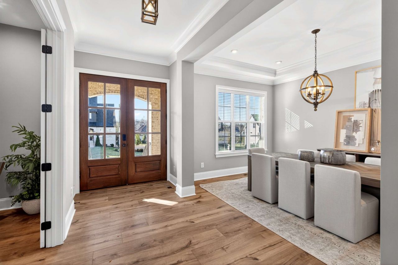 Elegant Family Living in Gated Kings' ChapelDiscover this stunning 2022-built home in the highly coveted Kings' Chapel community of Arrington-where timeless elegance meets modern comfort on a private 1/2-acre lot. Built by award-winning Drees Homes and inspired by the popular 'Belterra showcase plan, the layout features soaring ceilings, sun-filled living spaces, and thoughtful design for families of all sizes. Heart of the home is a chef's kitchen with generous prep and storage, seamlessly flowing into the dining room, keeping room, and spacious great room-perfect for both casual nights in and holiday entertaining. A stylish butler's pantry with wine refrigerator elevates every gathering.The main level is anchored by a luxurious primary suite with spa-like bath and enviable walk-in closet. Secondary bedrooms, each with private en-suite baths, carefully spaced to maximize privacy. Flexible office and additional bonus room provide ideal options for work, study, or play. A massive upstairs bonus with wet bar invites movie nights, gaming, or music practice. Price includes 3 Samsung TVs with sound bars - 85, 65, and 55.Outdoors, a wide backyard and covered patio offer year-round potential for cookouts and gatherings, while the rare 4-car garage-with custom cabinetry and epoxy floors-ensures plenty of room for vehicles, storage, and hobbies.Kings' Chapel delivers resort-style amenities designed with families in mind: a luxurious heated saltwater pool, clubhouse with full-service restaurant, remodeled fitness center, walking trails, stocked fishing pond, and acres of preserved green space.More than a house-it's a home where family life, entertaining, and everyday convenience come together beautifully.