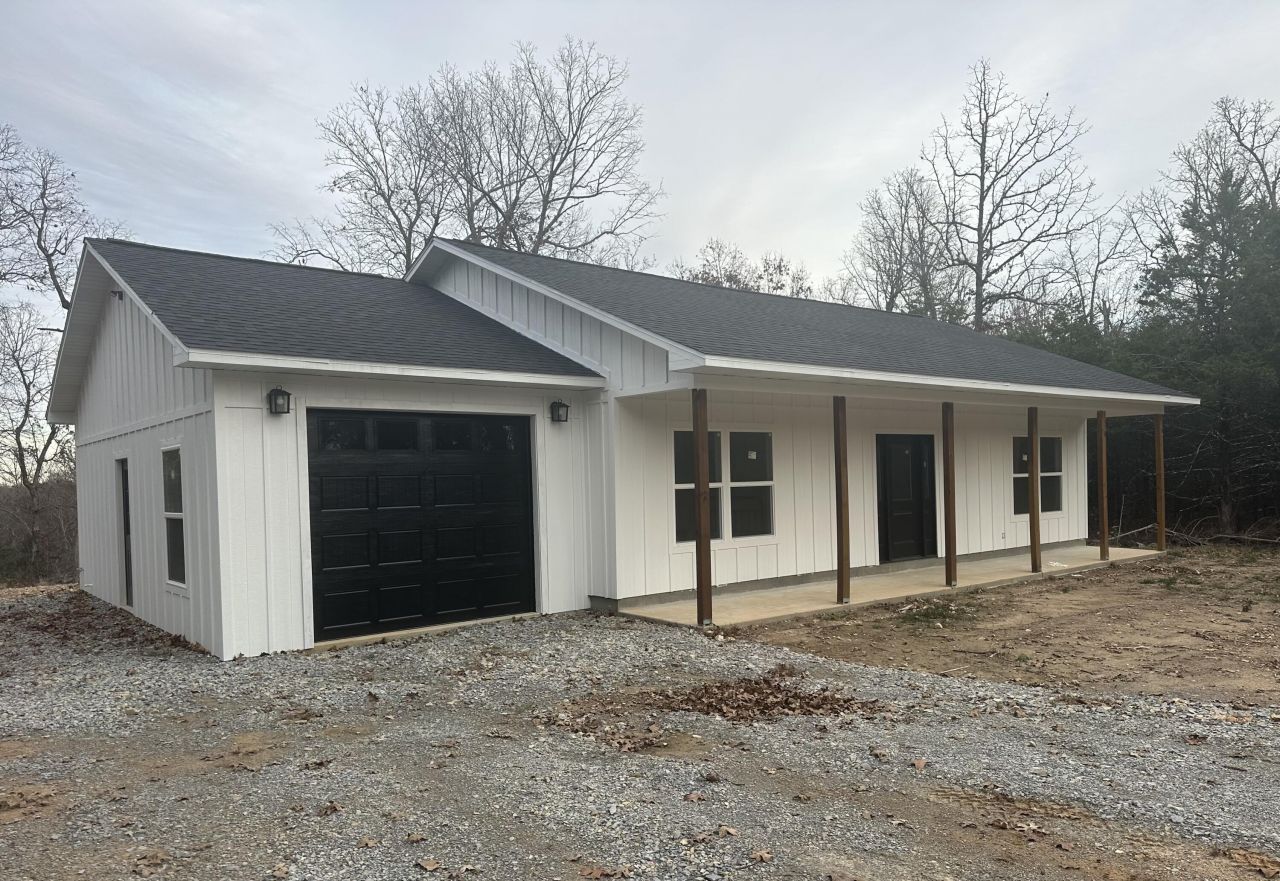 Dreaming of a relaxing lake lifestyle? Envision the ultimate retreat in this newly constructed home, awaiting a few finishing touches, featuring two bedrooms, two bathrooms, and a one-car garage. Upon entering, you'll be impressed by the soaring 9-ft ceilings in the expansive open-concept living and kitchen area. The kitchen features granite countertops, adding a luxurious element. Nestled on two acres, this peaceful haven provides a serene country setting while offering paved access and fiber-optic internet availability. This home is conveniently located near the Norfork Lake Wildlife Management Area - Bennett's Bayou, providing prime hunting grounds, less than five miles from Henderson boat dock and beautiful Norfork Lake, and under 15 miles from Mountain Home, AR, offering a range of shopping and dining options. The White River, Spring River, and Bull Shoals Lake are just a few amazing destinations within a short drive from this stunning home.