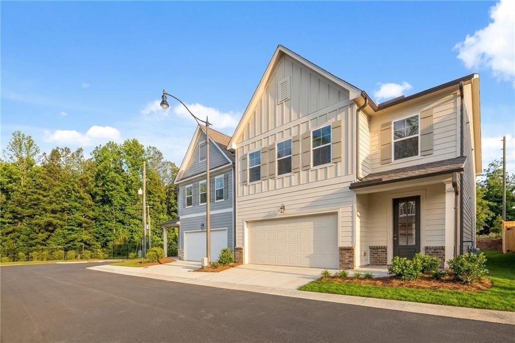 Buy New and take advantage of all the builder flex incentives.. Introducing The Gavin F at The Village at Shallowford, a stunning 4-bedroom, 3.5-bathroom home with 2,233 square feet of thoughtfully designed living space. Ready for immediate move-in, this home showcases an open-concept layout with a spacious living room, a gourmet kitchen and custom upgraded features. The kitchen is a true showpiece with 42 cabinets, in custom gray with modern soft-close drawers, a walk-in pantry, premium quartz countertops, a contemporary stainless steel farmhouse sink, and an oversized island perfect for entertaining. A cozy breakfast area and a convenient mudroom complete the main level. Upstairs, the loft has been upgraded into a fourth bedroom with a full bathroom option, complementing two additional secondary bedrooms. The oversized primary suite impresses with a trey ceiling, expansive walk-in closet, and a spa-inspired frameless shower conveniently located next to the laundry room. Luxury details are found throughout, including no carpet in the entire home, luxury vinyl plank flooring, oak tread stairs, frameless showers, and striking stone exterior accents. Set within the ONLY gated community with a pool and clubhouse in Kennesaw, enjoy quality amenities and proximity to excellent schools. With its charming exteriors and open floor plans, this home is a true gem!Schedule your showing today and experience all that The Gavin F has to offer.