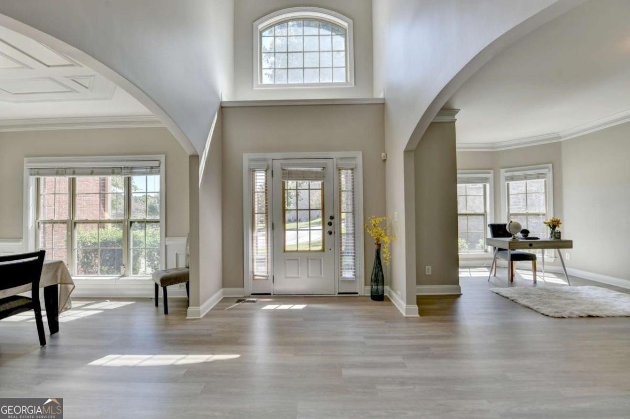 Welcome to a Stunning 3-Sided Brick Home in the Highly Coveted James Creek! Opportunities to own in this exclusive community are rare-and this one is truly special. Presenting the CHATSWORTH plan by Ryland, one of the builder's most sought-after layouts, this elegant residence includes an unfinished basement, offering endless possibilities to customize to your lifestyle. blends timeless design with modern luxury. Step onto the inviting a grand two-story foyer that immediately sets the stage. A formal dining room offers the perfect backdrop for memorable gatherings, while a formal living room creates a refined space to work or relax. At the heart of the home lies a chef-inspired kitchen, beautifully designed with an oversized farmhouse sink, premium granite countertops, custom tile backsplash and stainless steel appliances-including a built-in oven, microwave, and vent hood. The adjoining breakfast nook overlooks a sprawling landscaped backyard and extended patio-ideal for morning coffee, sunset dinners, or evenings under the stars. The family room exudes warmth and sophistication with custom built-ins and a striking granite fireplace, creating a perfect setting for both casual living and elegant entertaining.The main level also features a comfortable guest suite with a full tiled bath, offering privacy and convenience for overnight visitors. Upstairs, the owner's retreat is a sanctuary, highlighted by a tray ceiling, a serene sitting area, and a spa-like bath with dual vanities, garden tub, separate shower, and an oversized walk-in closet. A private en-suite secondary bedroom, two additional bedrooms with a hall bath, and a well-placed laundry room complete the upper level-all filled with natural light. Additional highlights include a dedicated media room for movie nights or game-day excitement, a spacious two-car garage, and thoughtfully curated finishes throughout. Set within a resort-style community with a swimming pool, twelve lighted tennis courts, and a clubhouse, this home is also zoned for highly rated Forsyth County schools and benefits from low county taxes.Don't miss this opportunity to own in one of the area's most desirable neighborhoods!