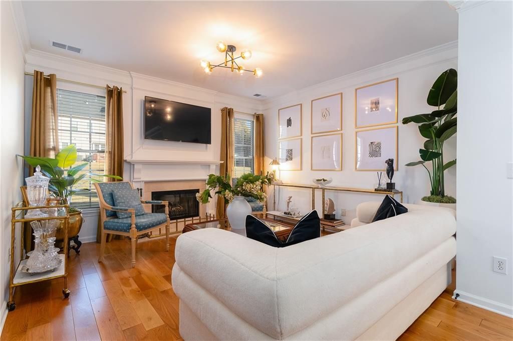 Welcome to Longleaf in Vinings, a gated townhome community ideally located near The Battery, Truist Park, Vinings Jubilee, West Village, and the SilverComet Trail, with convenient access to I-285, I-75, Buckhead, Midtown, and downtown Atlanta.Ask about the assumable 2.7% interest rate for qualified buyers ? a rare opportunity to secure a significantly lower monthly payment in today's market.This thoughtfully designed and extensively updated 4-bedroom, 3.5-bath townhome offers a refined blend of elevated finishes, functional living, and modernstyle across three finished levels.The main level showcases a designer kitchen featuring quartz countertops, custom cabinetry, stainless steel appliances, and curated hardware, seamlesslyopening to the living and dining areas. Rich hardwood floors, architectural wall detailing, and designer lighting create a warm yet sophisticated atmosphere.A standout feature is the custom walk-in pantry with built-in shelving and organization, offering both style and everyday functionality rarely found incomparable homes.The living area flows effortlessly to a private rear deck and covered patio below overlooking a wide open green space, providing a rare sense of privacy andan ideal setting for outdoor entertaining or quiet relaxation.Upstairs, the primary suite is a true retreat, highlighted by a fully renovated spa-inspired bathroom with a freestanding soaking tub, frameless glass shower,double vanity, and custom walk-in closet with built-ins. Secondary bedrooms offer flexibility for guests, home office, or additional living space.The terrace level is fully finished, featuring a spacious media or lounge area perfect for entertaining, movie nights, or a private guest suite, complete with afull bath ? creating a versatile extension of the home's living space.Additional highlights include a designer powder room with statement wallpaper and custom mirror, dedicated laundry room with built-in storage, and multipleupgraded closets throughout.Residents of Longleaf enjoy gated access and resort-style amenities including swim, tennis, pickleball, playground, and clubhouse, offering a truelock-and-leave lifestyle.Located minutes to Smyrna Market Village, Cumberland, and major employment centers, this home delivers the ideal combination of location, design,lifestyle, and long-term value.Move-in ready and exceptionally curated ? this is a standout opportunity in one of Vinings/Smyrna's most desirable communities.Sold with home warranty.Note: Several photos have been virtually enhanced.